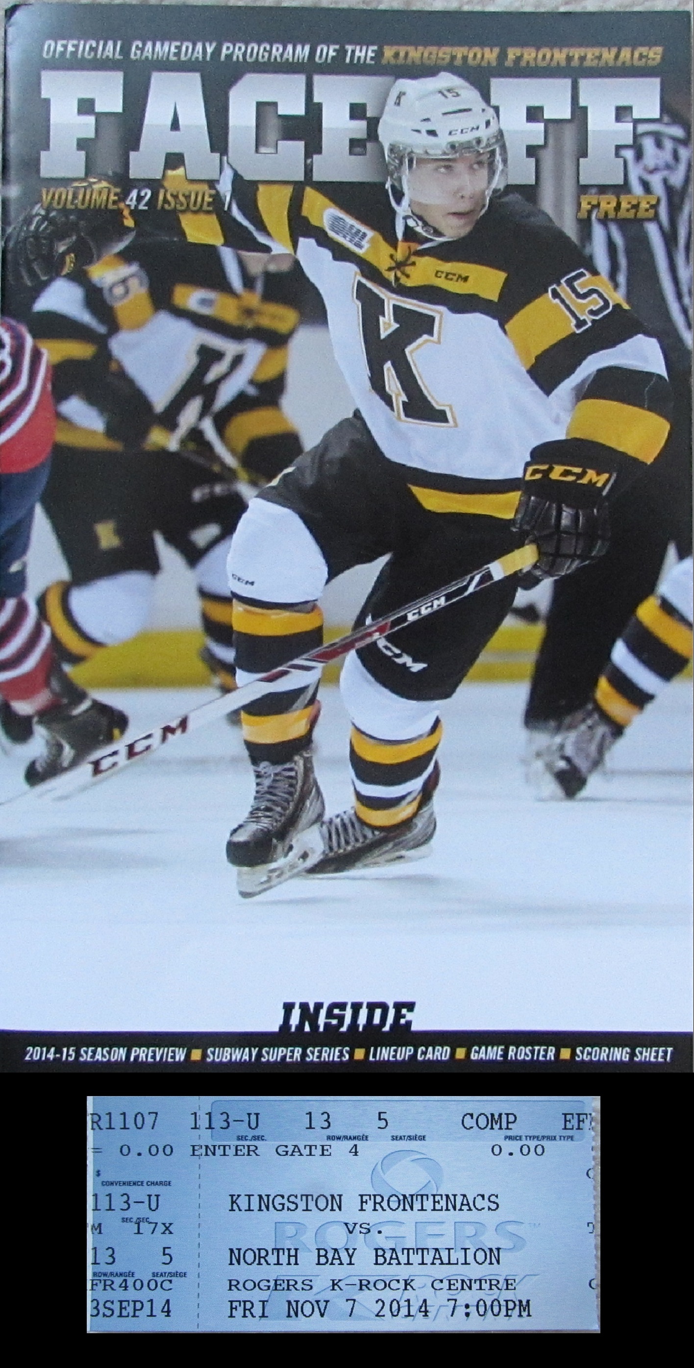 Not a good showing by the home folks on this night as they were sloppy, lethargic and offensively challenged. North Bay opened the scoring in a rather dull game with a goal by Nick Paul at 11:21 of the 2nd. The killer was a power play goal with just 3.4 seconds left and the Battalion were in control as they led the shot total 22-13. A pair of bad Kingston penalties led to another North Bay goal and it wasn’t until this point (halfway thru the 3rd) that the Frontenacs woke up. Spencer Watson finally scored with a little over 3 minutes left and they were close to getting a second. Alas, North Bay added an empty netter and won 4-1.