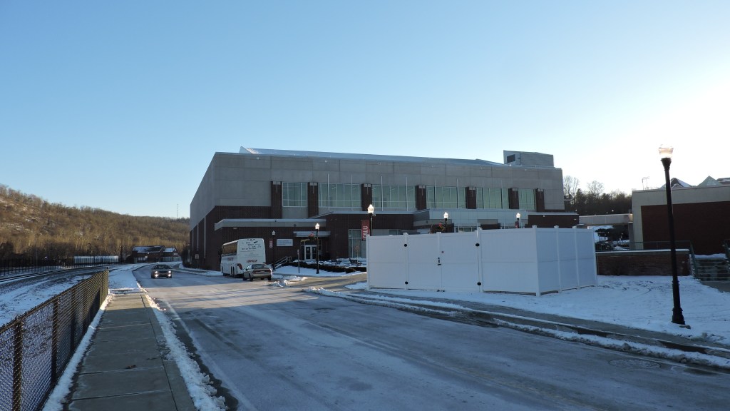 When it comes to getting here, the relative close proximity to a pair of major interstates (I-70 and I-79) helps the accessibility and the town is Exit 32 on Rt. 43, which unfortunately is an annoying tollway. Be aware that if driving from downtown Pittsburgh like I did, drivers need to use the stoplight-filled Route 51 to reach the tollway. Once in town, the Convocation Center is along the river and the campus roads are a little odd to reach the parking in back of the building. Though the signs say “Permit Only”, it is fine to park here for basketball games.