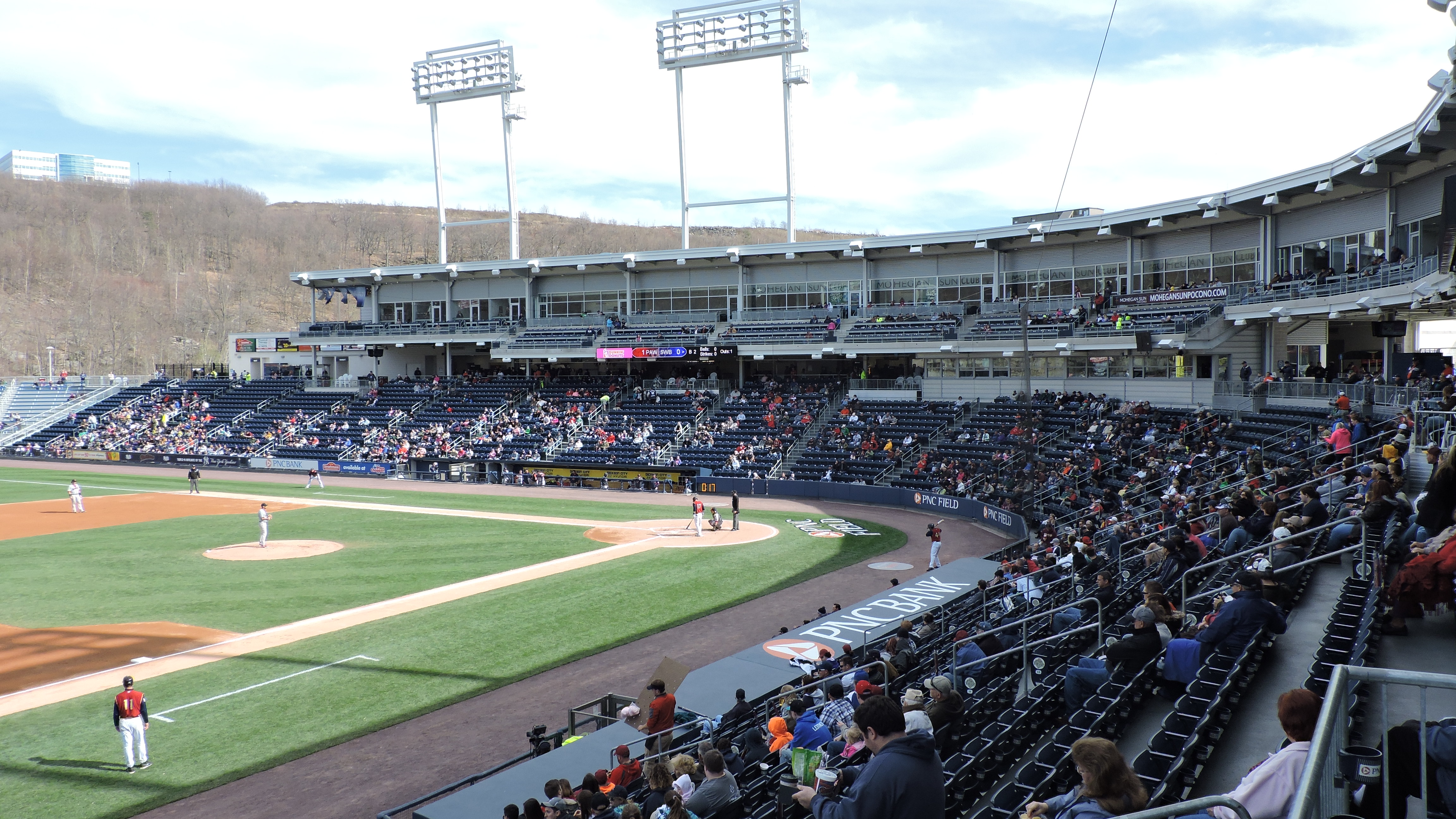 Before the game, I spent a good amount of the day about 10 minutes away in Scranton, where the Steamtown National Historical Site offers a fascinating look at the steam-powered train and its relationship to the area. There are a fair amount of attractions across Lackawanna County that are geared towards the history of what built this part of the country: coal and locomotives. The hilly area around Moosic does not have much, but you will find a ski resort on Montage Mountain, along with a water park and a golf course. There is also the Shoppes at Montage, a built-up strip mall section consisting of shopping, restaurants, hotels and a movie theatre. This section sits on a steep incline and from the edge of the parking lot, there is a panoramic overhead view of the ballpark below.