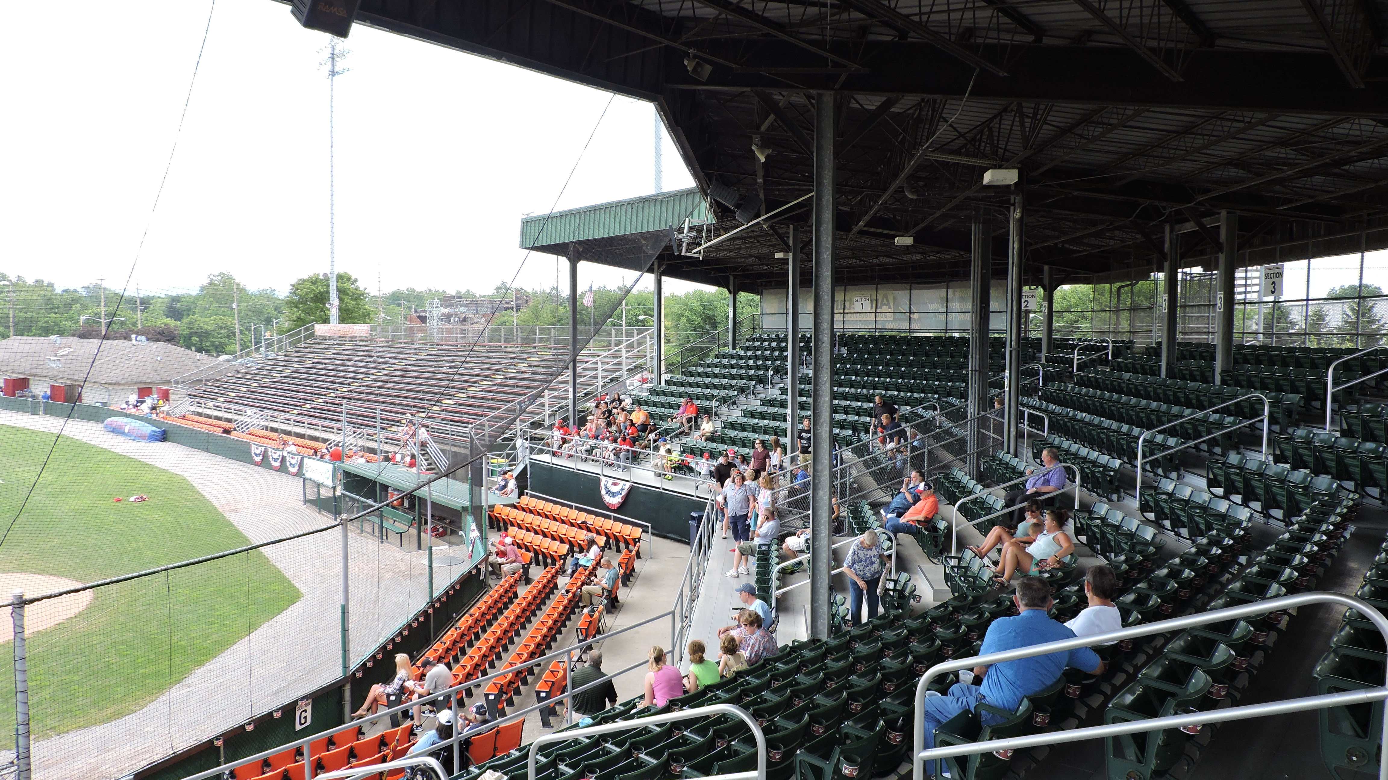 Centering Municipal Stadium is a covered grandstand behind home plate. Five sections make up the stand with aluminum dominant throughout (perhaps contributing to me not being enamored with this place). On the plus side, all seats are individual and quite comfortable, with the green roof overhead providing multiple benefits. There are also a couple rows of seats right at ground-level that surround the field and while these seats offer a unique perspective, their distracting orange color (leftover from when the Orioles were the affiliate) would be more appropriate as red. The outfield view just offers some trees beyond the fence. Municipal Stadium is a place that needs some TLC and is a place that is hindered in a hastily put-together initial design. I usually cherish historic ballparks like these, but this one did not sing to me.