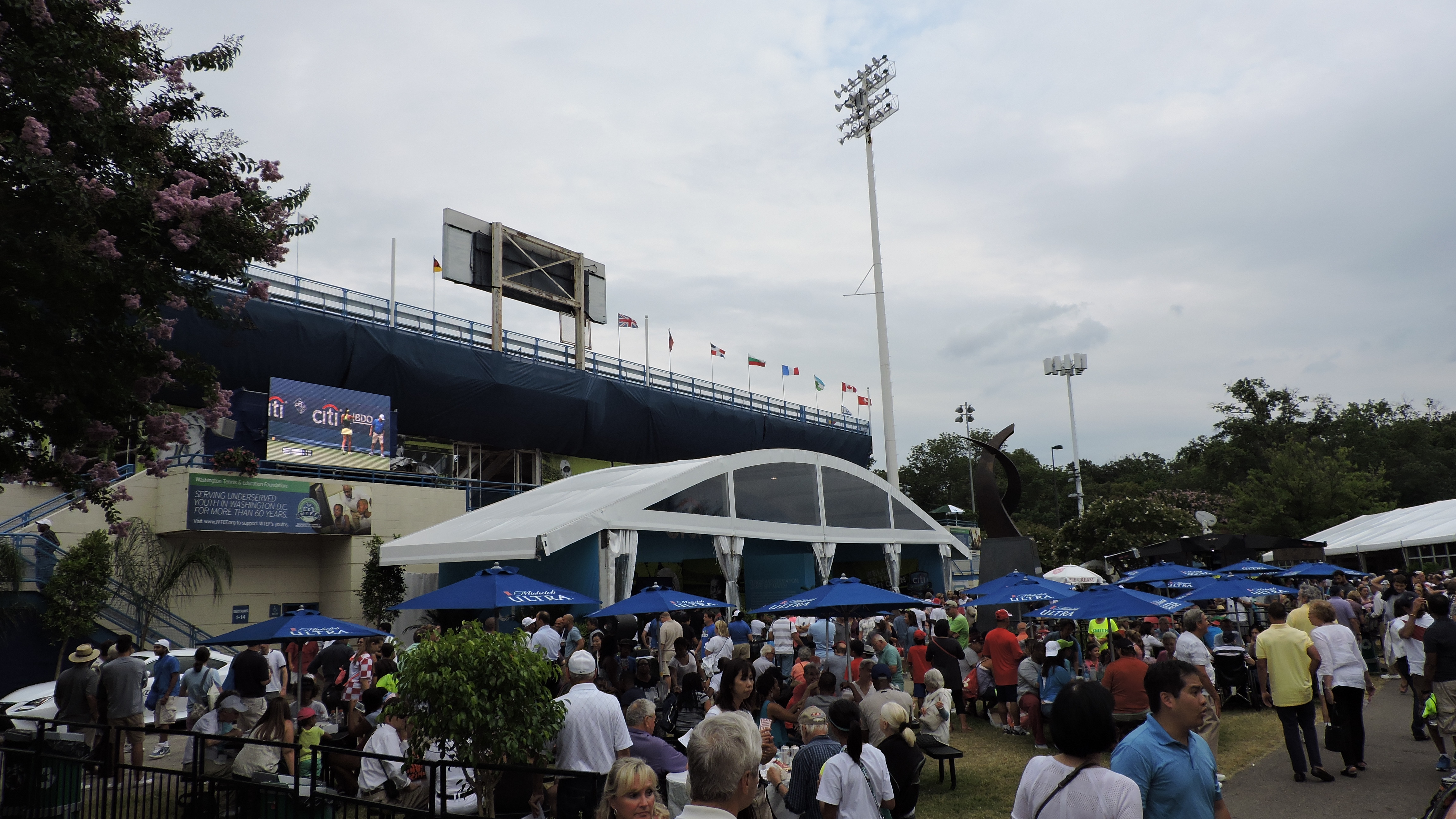 Getting here takes some planning and boo to the Citi Open website for having no information until less than a month before the first match. Going by car is adventurous as DC is a notoriously difficult to city to drive in, with the local roads offering the biggest challenge. Thankfully, Rock Creek Park is outside the most challenging areas and with the entrance being on 16th Street, it is a predominately straight road (though Interstate access via 495 is far). Parking at the tennis center however, is strongly discouraged as the field lots are extremely limited without a pass and they close these grassy spots even with just a potential for rain. Instead, it’s best to use one of two parking garages (for free) near the University of DC. There is then a 25-seat shuttle bus that runs to the tournament from Connecticut Ave and we had no problem with lines for Friday Evening (not sure what the scene was like for the more crowded Sunday final). This shuttle is also accessible to the Metro Station across the street, which is the best way to arrive as DC has a great transportation system that is easy to follow. The Van Ness stop is located on the Red Line.