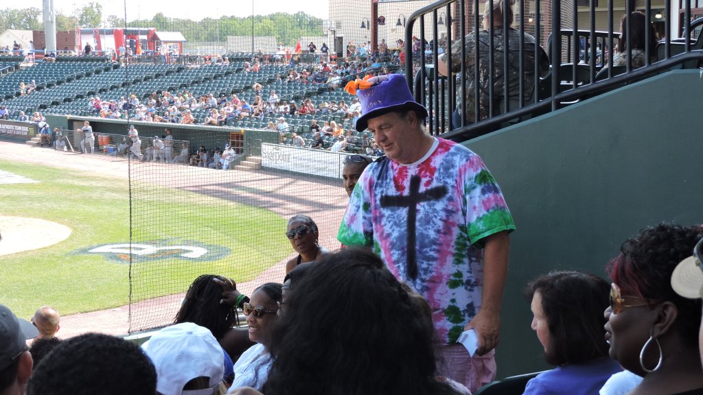 The small crowd led to a muted atmosphere, however, the fans did well to applaud on the significant plays in the game. When the Blue Crabs tied the game on a home run, many got on their feet to cheer. While the crowd was ok, it was actually the team’s on-field host (Ron Lord) that diminished my experience. Somehow the fans love him here and that puts me in the minority in not liking this guy who was wearing tie-dye with a big cross painted on it. Borderline creepy and incredibly annoying, he frequently would walk on the dugout during game action, either interacting with the mascot or conversing with the crowd. This made it impossible to actually watch the game, though I know many aren’t fully there for that reason. Multiple times I moved to a different part of the stadium just to get away. I also found his interactions with people to be awkward and way too close for comfort. He hosted a few between-inning games that probably are not a good idea…like an iced-tea chugging competition and an “Apache” dance with kids. I’ve seen some MCs interject themselves into the experience before, but no one has yet to annoy me like he did.