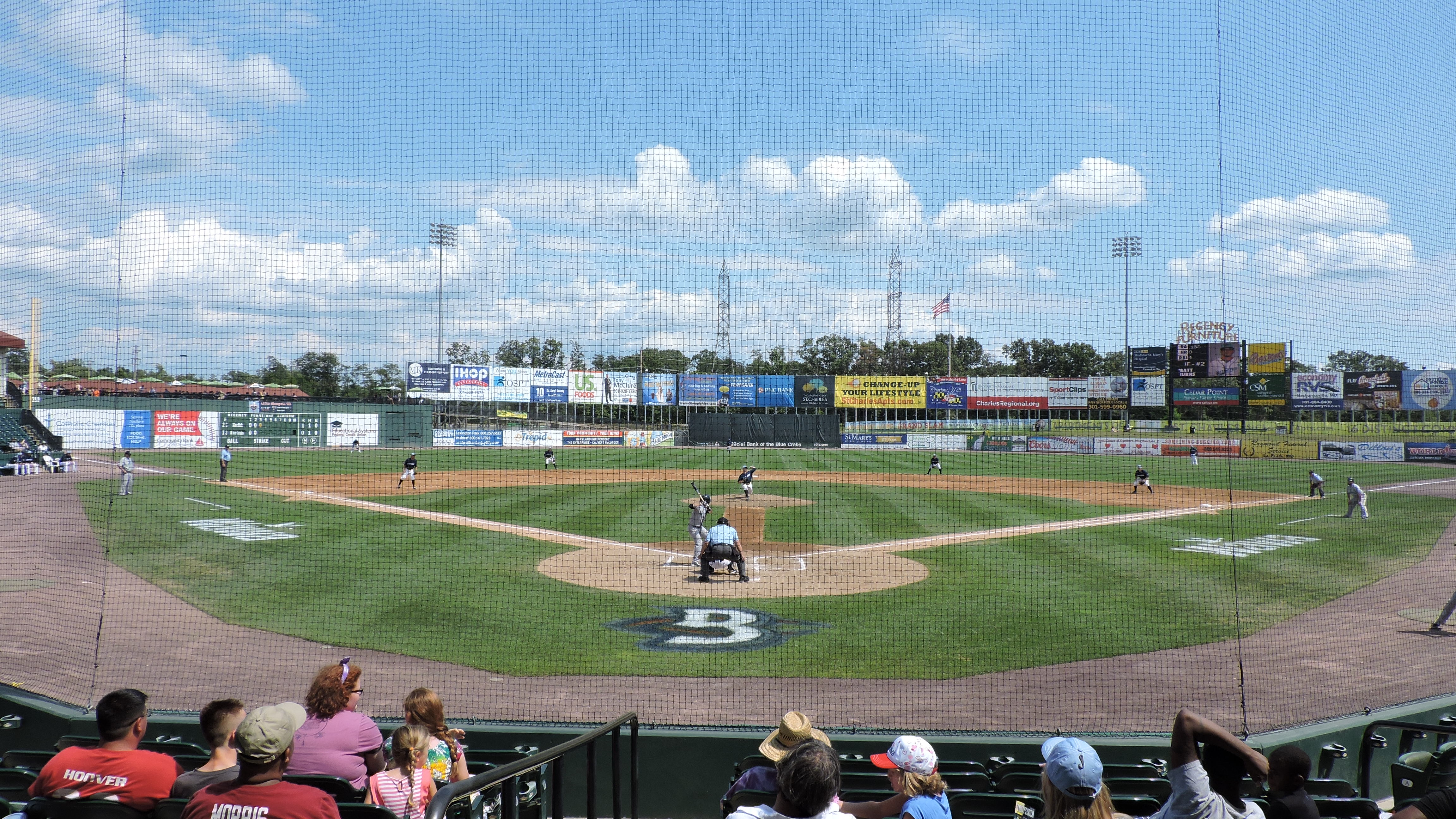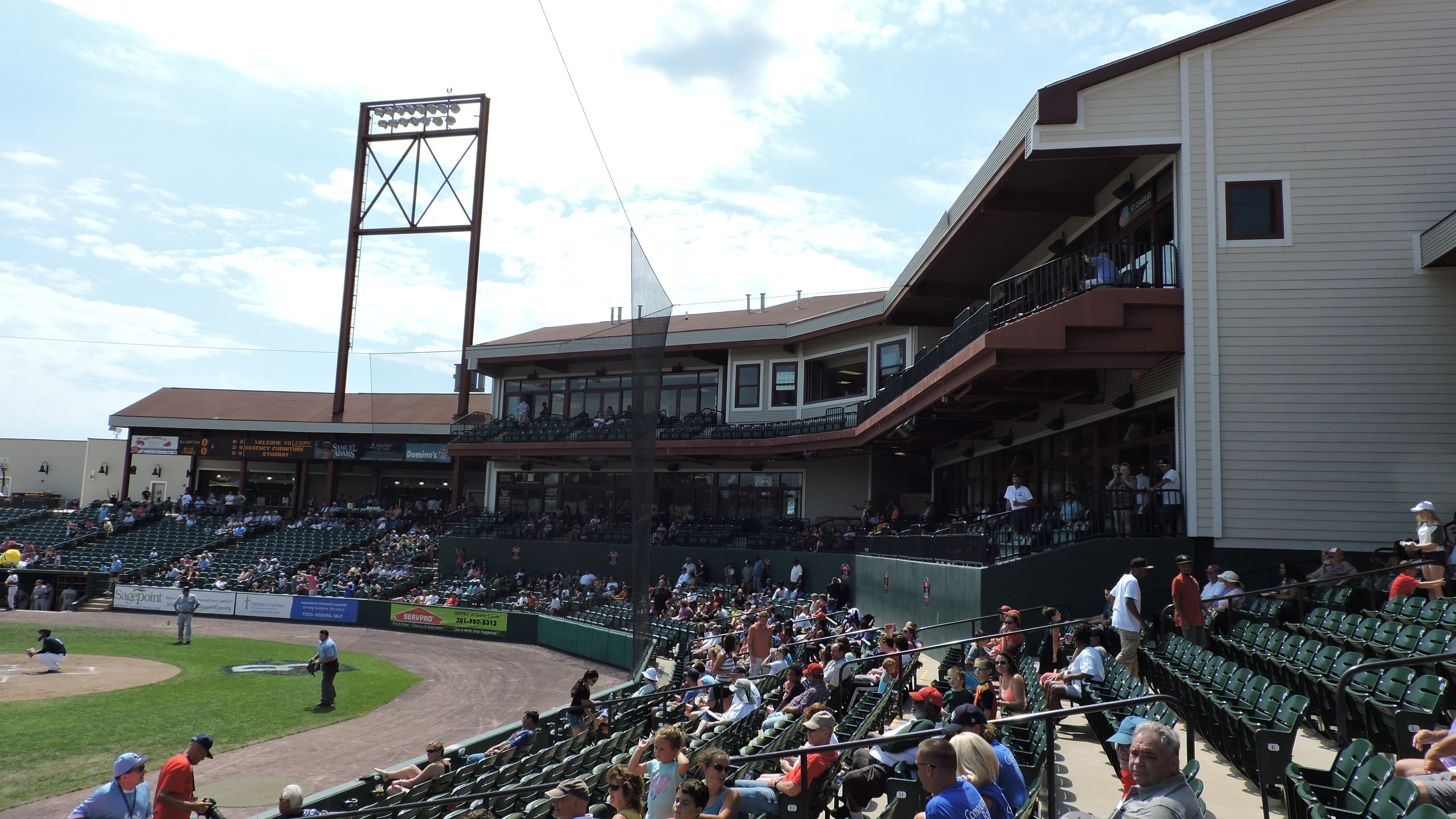 Despite its close proximity to Washington, DC, the southern portion of Maryland remains a relatively rural section of the state. This is especially true in Charles County, where tobacco fields used to rule the land. While most of the county is open, there is rapid growth in one town, as the Waldorf area is home to 65,000. In combination with the massive planned community of St. Charles that started in the 1960s, this section of the county continues to grow at a rapid pace with new housing developments popping up all the time. The independent Atlantic League loves this type of location and demographic and in 2008, the Southern Maryland Blue Crabs joined the league. In their time as a franchise, the team made the league’s championship series in their second season. Ready for Opening Day 2008, Regency Furniture Stadium became home for the Blue Crabs and this ballpark finally broke the cookie-cutter league template, resulting in an excellent design. Too bad the on-field house ruined the experience.