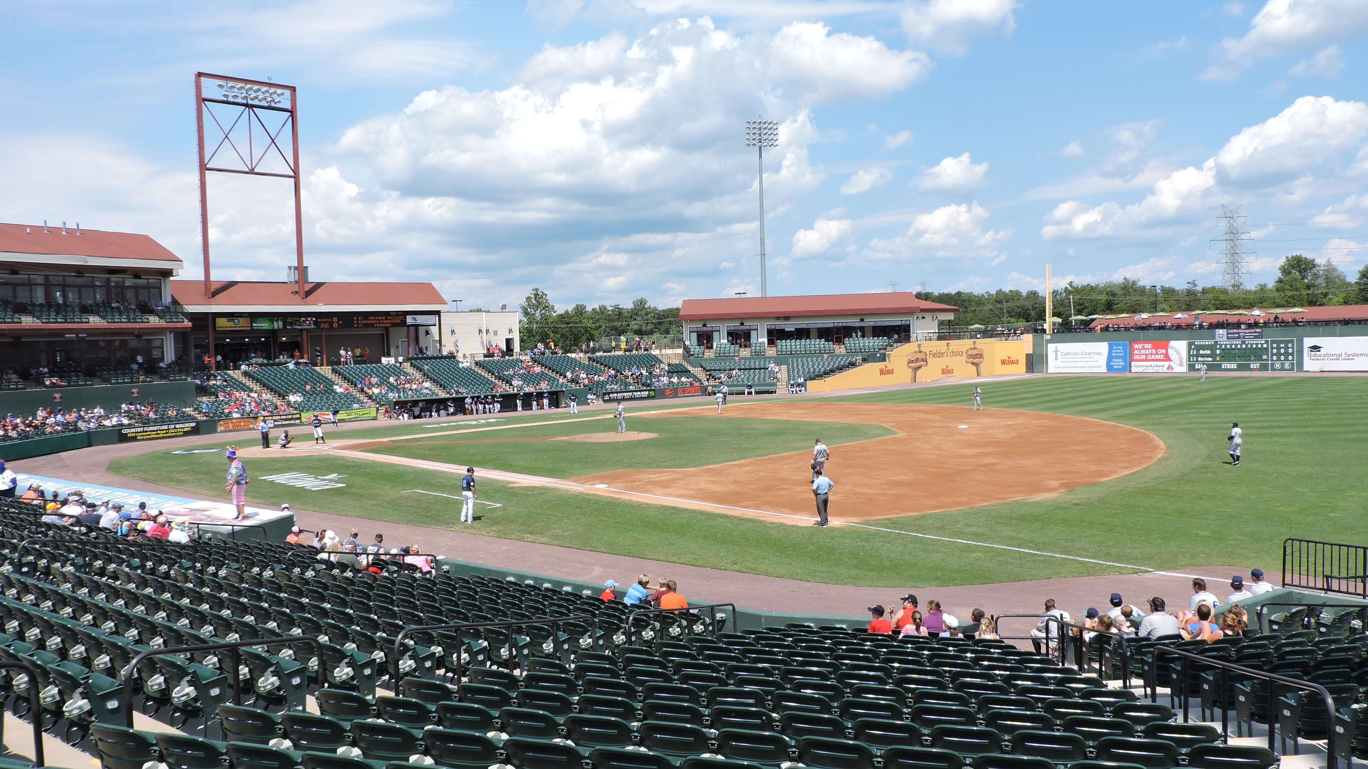 Waldorf is about 45 minutes southeast of DC and the community’s center is a six-lane highway framed by every national retailer and restaurant that you can think of. Not exactly homey. The only draw outside of the ballpark is the Dr. Samuel Mudd House Museum, which is a delightful attraction well worth the hour I had before the game. Regency Furniture Stadium (RFS) is a good 3 miles away from “town”, kind of in no man’s land. The area growth is very evident driving in as new apartments, condos and houses are in abundance. The ballpark is across from a new high school and open fields remain where housing has yet to take over.