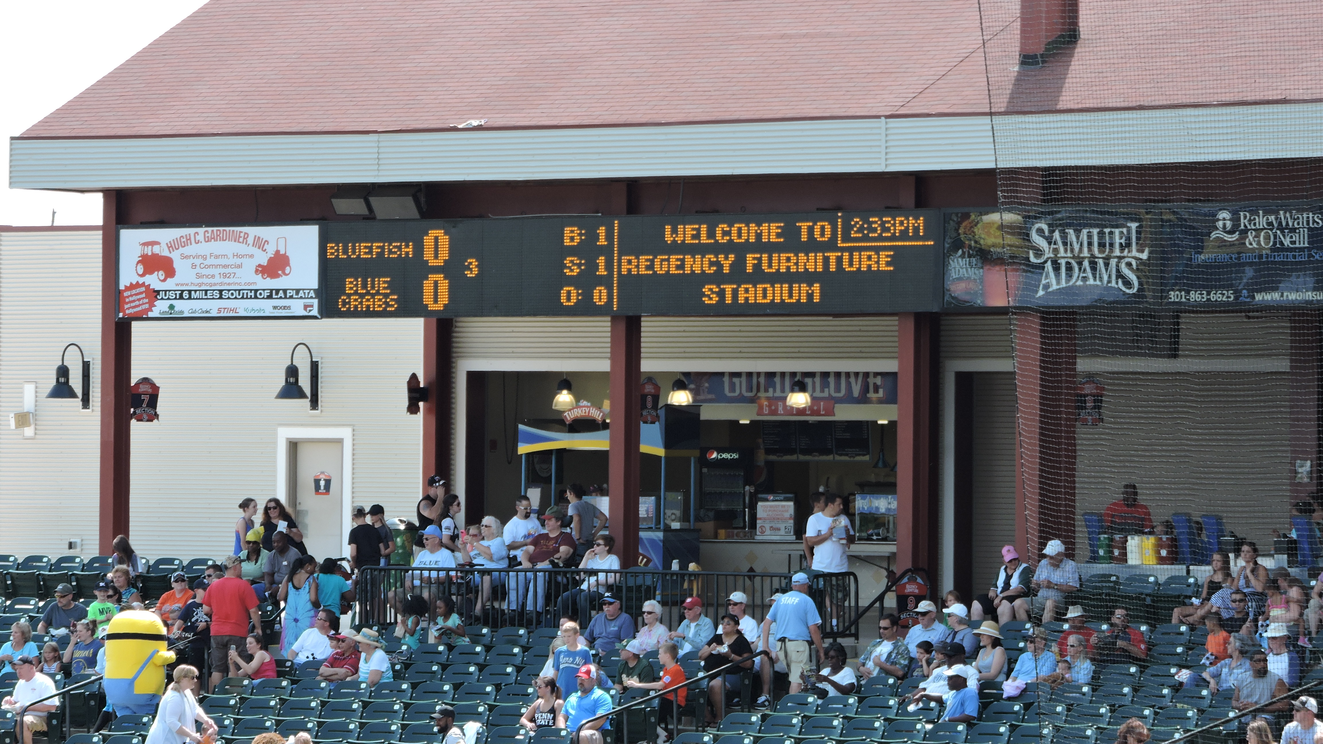 Back in the main concourse, only two primary concession stands were open and they offer the same thing. It’s not much of a variety with burgers, hot dogs, chicken tenders and the like. I had pulled pork which was pedestrian. Turkey Hill provides multiple ice cream treats. Given that this is the home of the Blue Crabs, I would have expected more than just a “Crab Cake Platter” buried at the bottom of the menu. Apparently there is/was a Seafood stand, however metal girders closed a couple stands (on a weekend nonetheless), so I don’t know if that’s a permanent closure. The beer has more to offer as the Calvert Brewing Company serves up Opening Day Cream Ale. Other breweries with products at the park include Fin City and Baltimore-based Natty Boh. There’s even a special Blue Crabs Lager available.