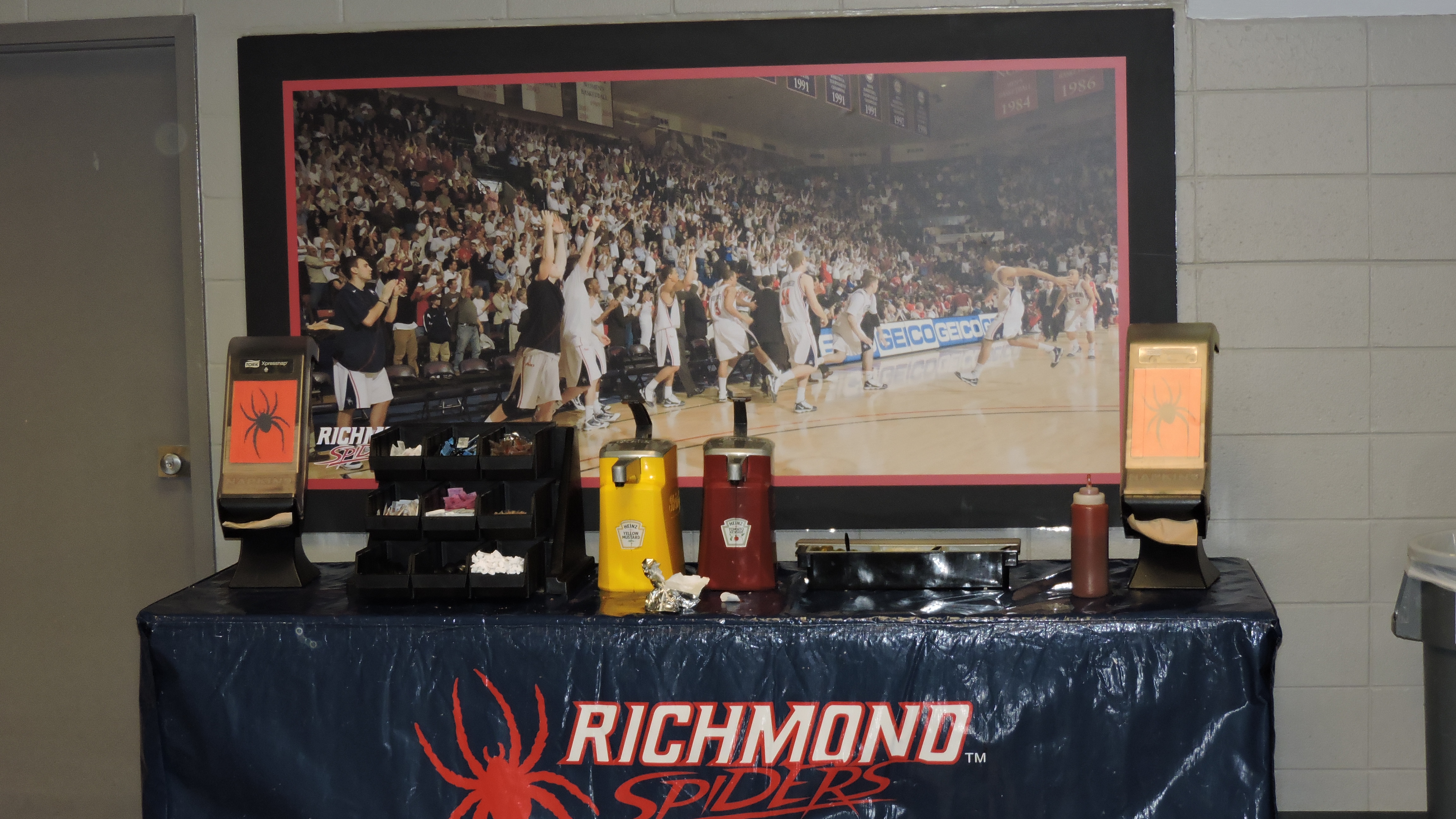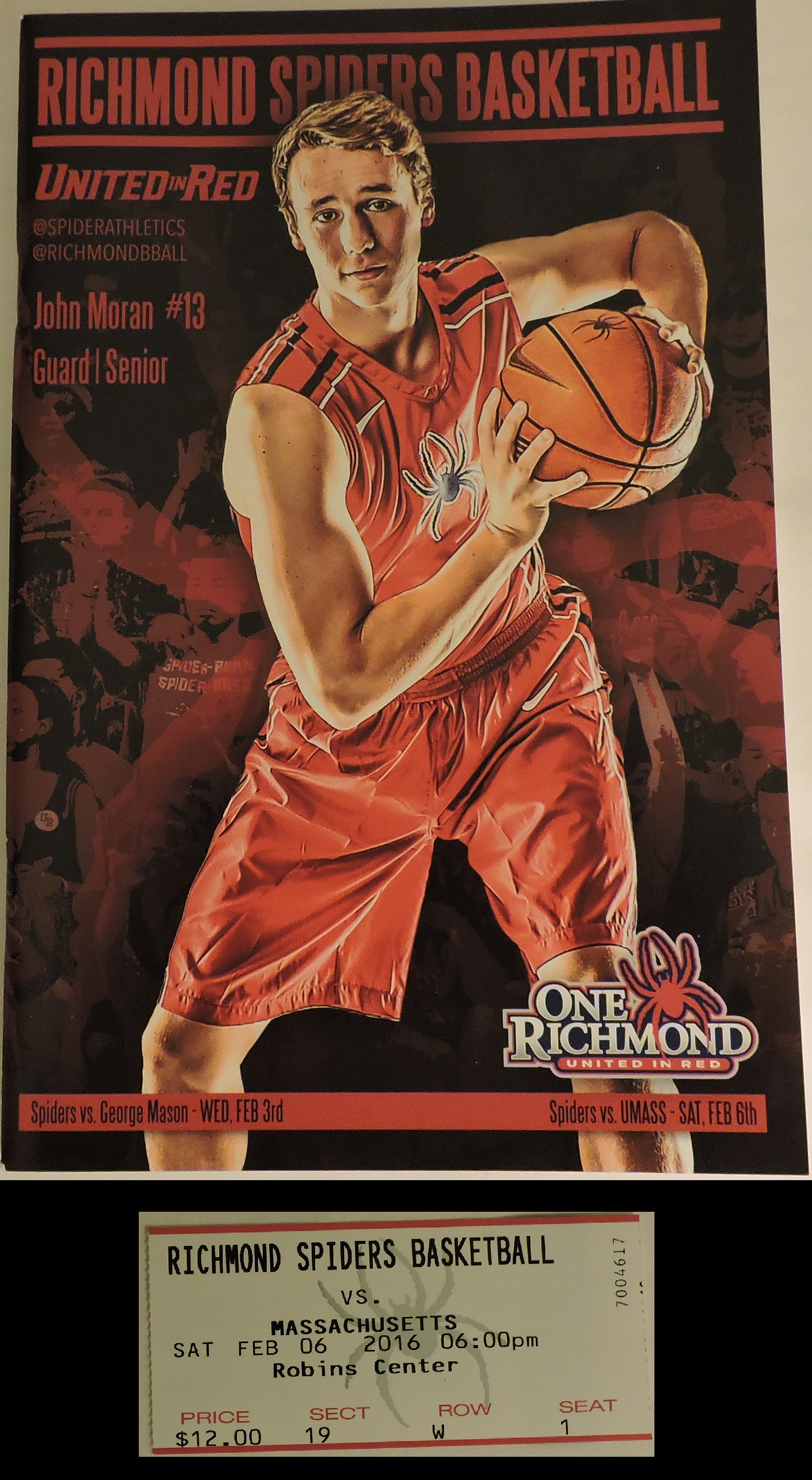Richmond basketball is very reasonable as parking and programs are free. A game ticket has two prices: $22 for most of the seats and $12 for the higher sections and the ends. That is decent and so are the food prices as a cheeseburger is $5, hot dogs cost $3 and a medium drink is also $3.