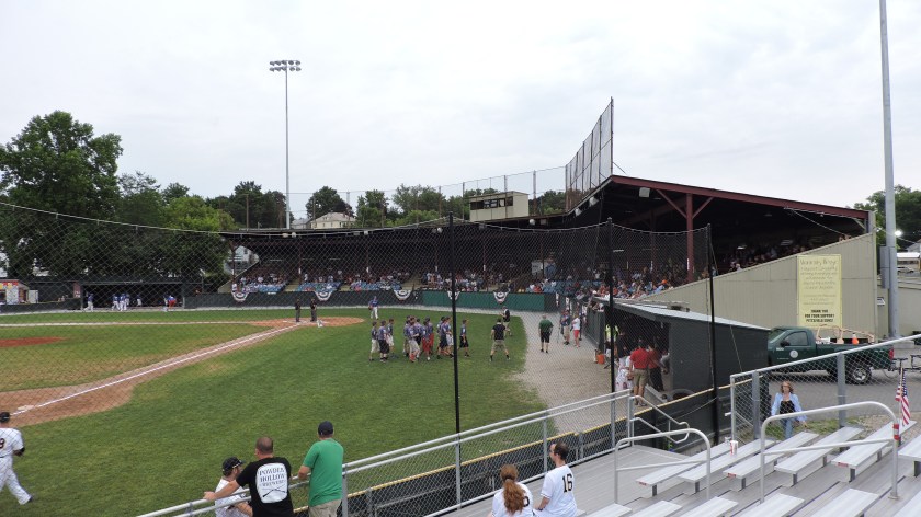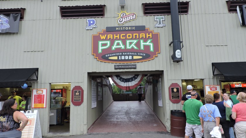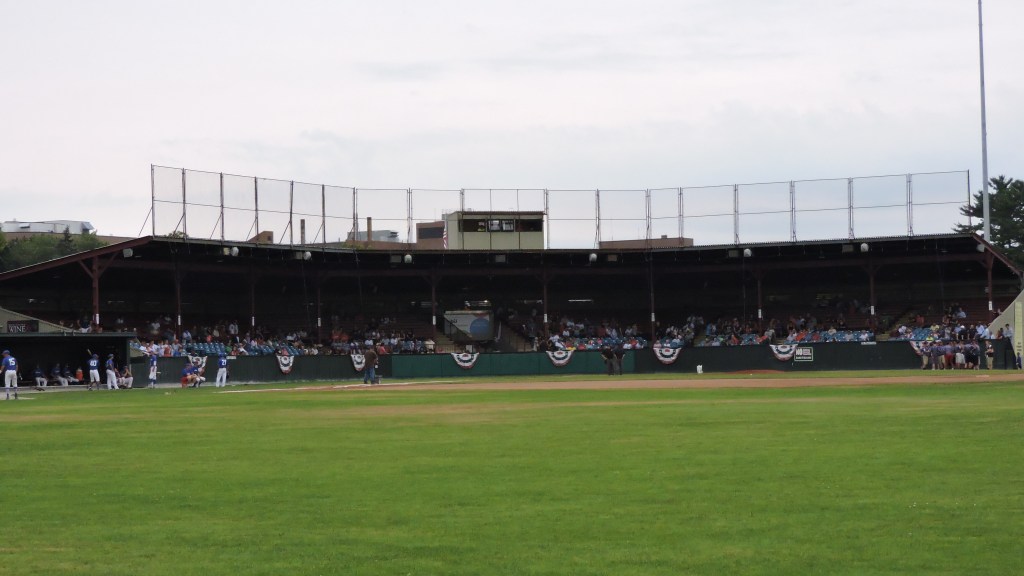 Summer-Collegiate Baseball Leagues have unintentionally helped to keep some of America’s oldest ballparks alive and I had the opportunity to see one on a trip to Pittsfield. This city of 44,000 is in Western Mass and is the urban center of the Berkshires, a mountainous area that is popular with regional tourists. That foundation may seem like Pittsfield would be an ideal municipality, but reality is that the declining city is/was an industrial town with struggles since their main employer (GE) left the area. I got that sense while walking downtown, though there were decent historical elements in the city center and a few newer, trendy spots. Historians found references to baseball in Pittsfield dating all the way back to the late 1700s and several affiliated teams with various nicknames played here during periodic times in the 1900s. In 2001, their single-A squad moved to Troy, NY and several teams in Independent and Summer-Collegiate leagues tried and failed. In 2012, the Suns began play in the FCBL and they are near the end of Year 5 in what has promise for a longer, sustained run. All of those teams have used Wahconah Park, a ballpark of yesteryear built in 1919 with one of the last wooden grandstands remaining in the country.