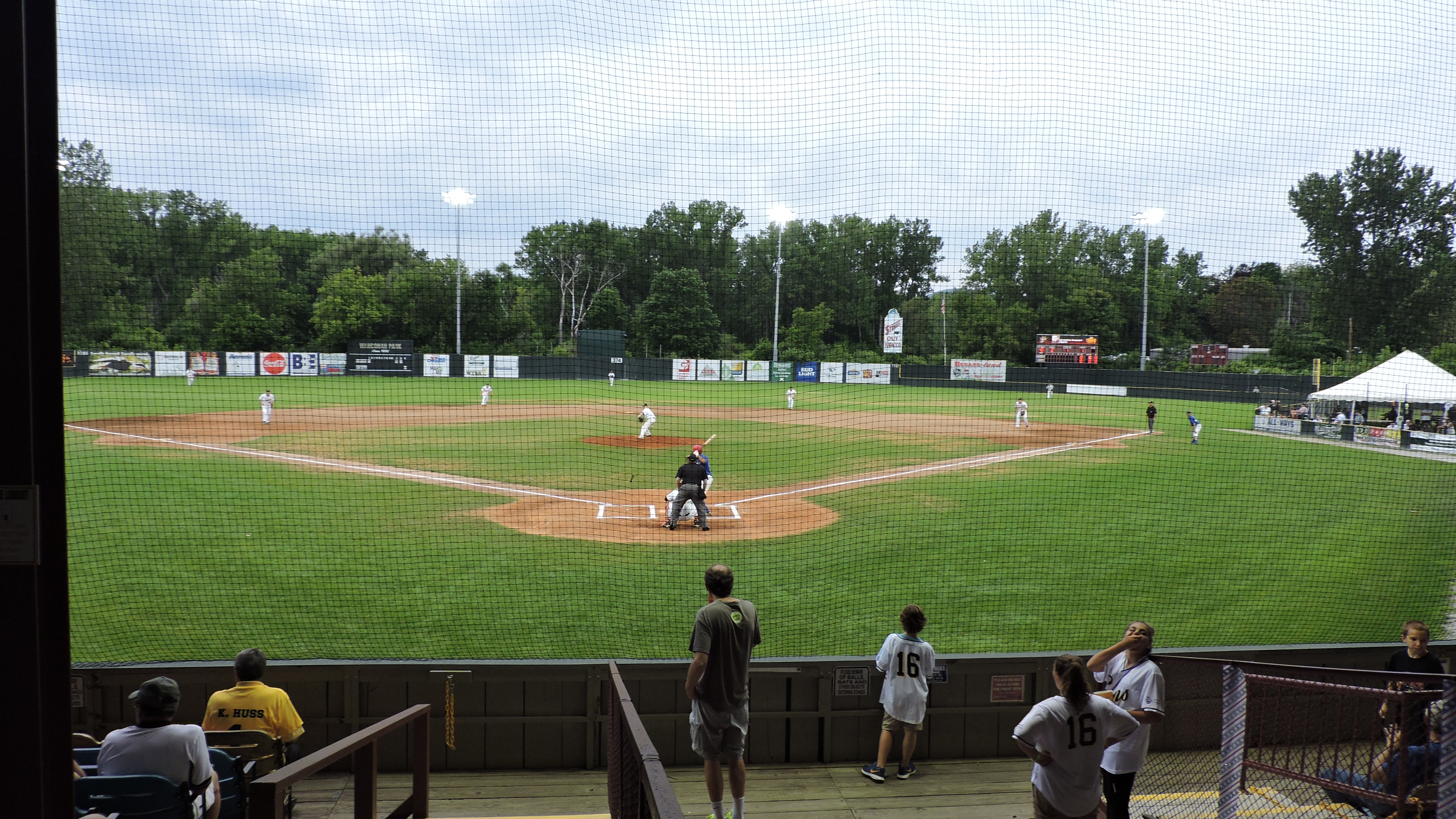 Less than half the park was full as the official attendance number of 1,426 seemed reasonable. That’s right around average for Pittsfield, where the attendance has gone up the last few years, placing the team first or second in the league (and Top 20 for all Summer-Collegiate Leagues). Wahconah’s structure makes for an intimate atmosphere and it seems like the crowd follows the game and responds more than a new-age ballpark. Fans are still generally laid-back (no one really being expressive during game events), but the noise of their applause is greatly amplified by the confined and covered grandstand. Also noteworthy is the dearth of zany contests as the focus is on baseball here, a welcomed change for this fan. Sound effects and music remain used, but organ recordings are much more common than pop.