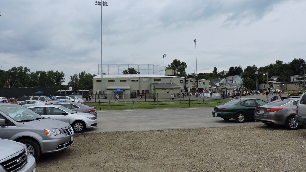 After getting into Pittsfield (which does take some time as I-90 is a good distance away), arrival and finding the ballpark is not a problem, but parking is. Cars enter into a bumpy, gravel lot that becomes a free-for-all as individuals make their own crooked rows. I’m trying very hard not to make a comment generalizing Massachusetts drivers. There is far from enough spots for the capacity of the park, despite the potential opening of an adjacent grass lot. Some will opt to park on the street, while I suppose the parking garage at the nearby Berkshire Medical Center is a last-ditch option. My advice: get to the game early. Egress from the lot is tight and briefly busy, but the relative low attendance of people leaving makes the departure not as slow as it could be.