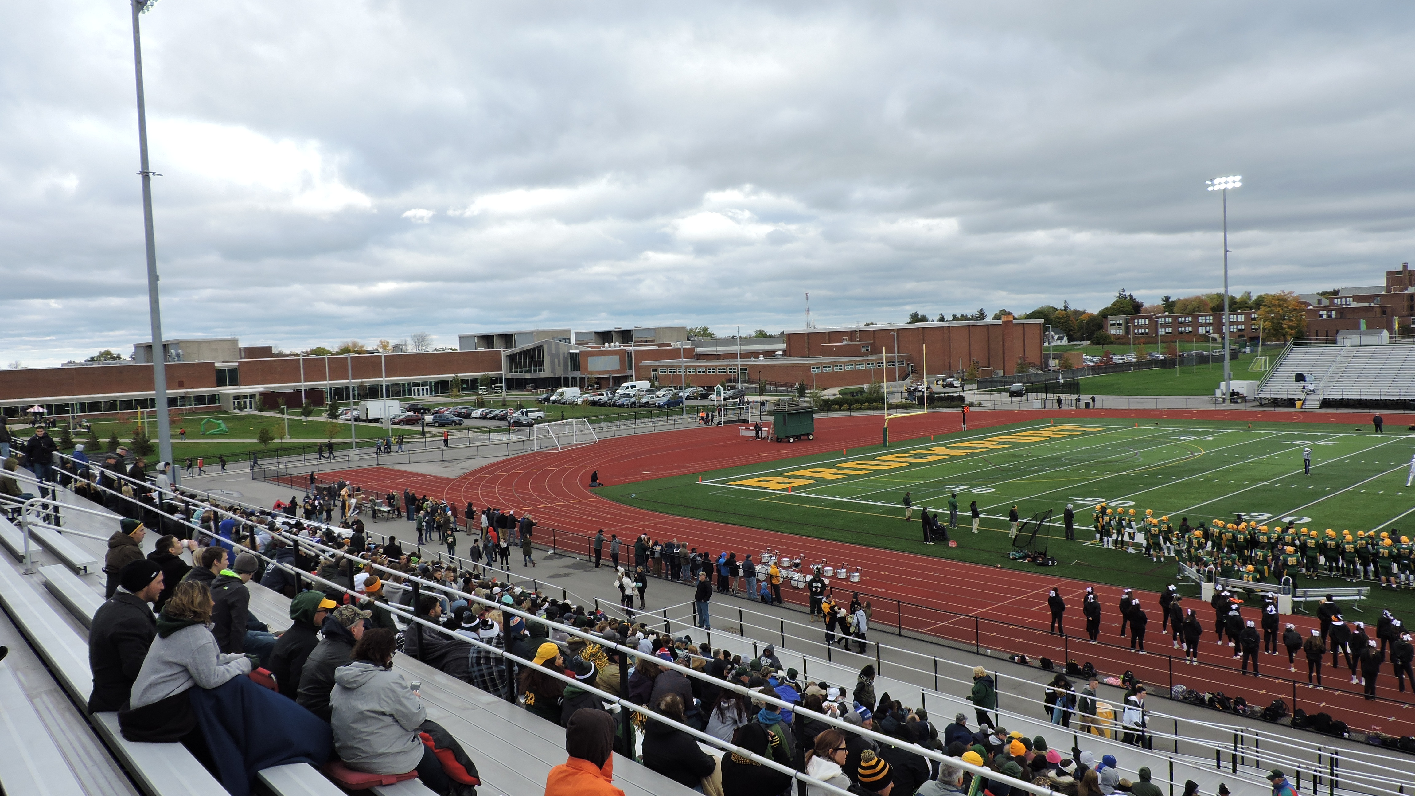 Though it is a little outside of primary highway access in the Rochester area, it is still very easy to reach the village thanks to straight-forward roads like Route 104 and Route 19. Campus is just a mile from the center of Brockport and the stadium can be found along the south side of the grounds. A pair of large parking lots are on the sides of an athletic building with the football stadium behind that and it’s a little further of a walk than one would expect for a D3 stadium. Also, there are no signs to indicate these lots are where fans should park. As for traffic, it’s typically non-existent, the exception being if everyone leaves at the same time as the access roads are just two lanes.