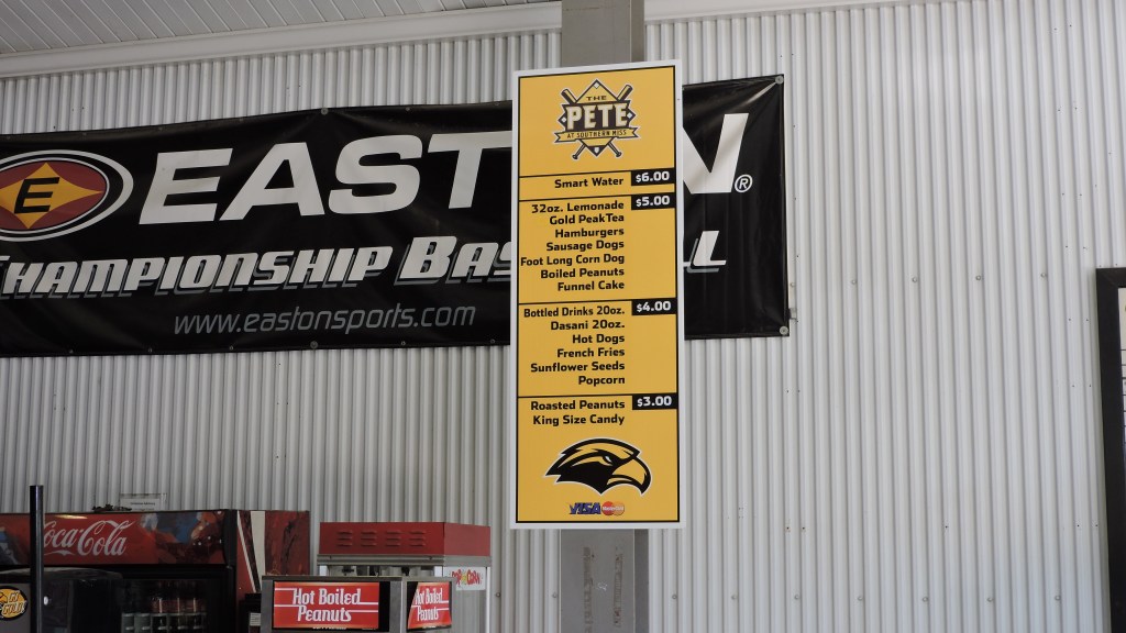 There are small, but multiple posters both in and out of the ballpark that display the team achievements by Southern Miss. These come in various forms and are done well. The 2009 team gets particular attention as they went to the College World Series and the long banner behind the first-base bleachers is one to check out as it includes a team picture from Omaha.