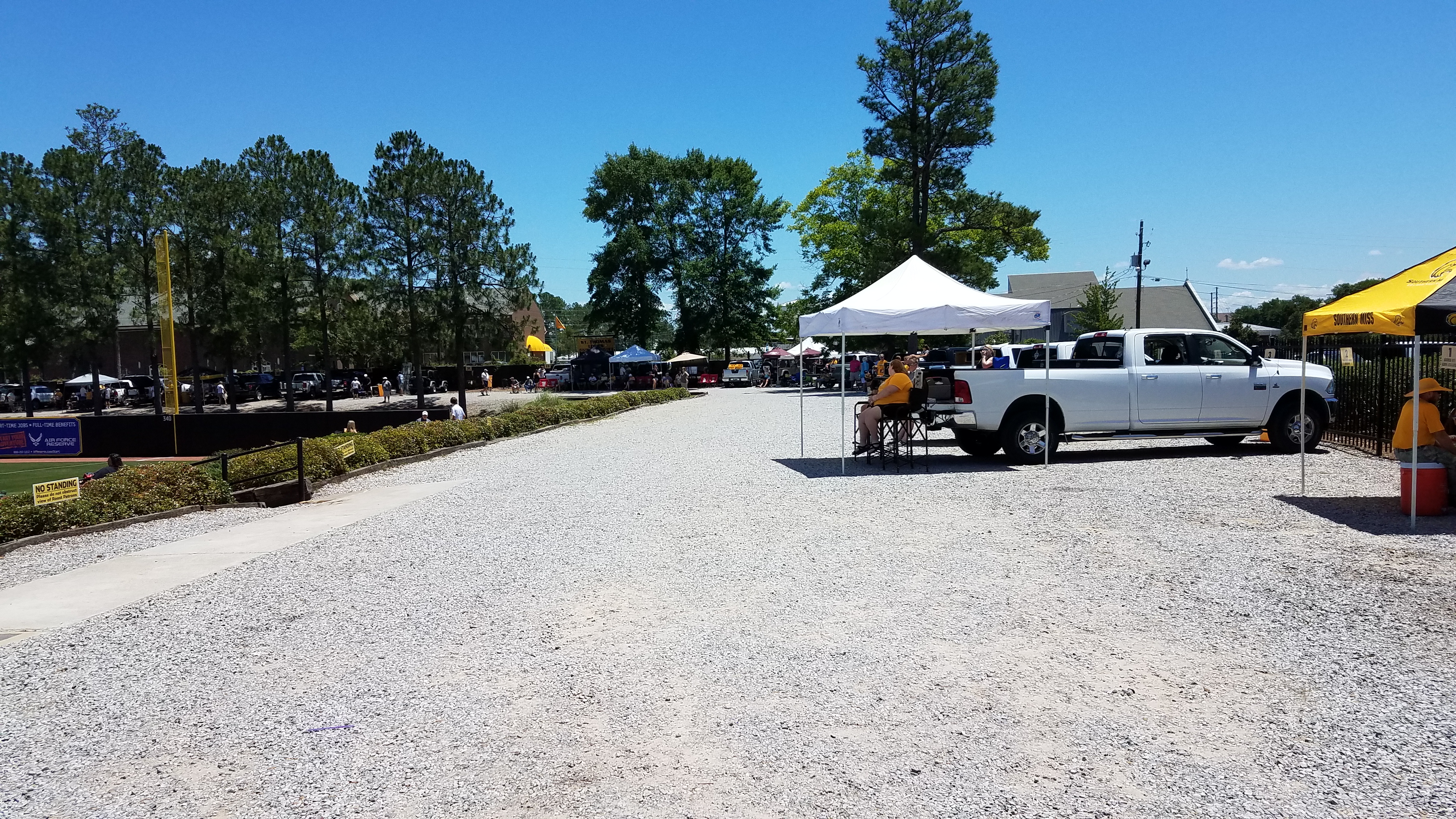 A partial concourse is covered and made of the same metallic siding seen from the outside. Not the prettiest, but it’s better than the tighter space underneath the structure, which is used to reach the center and left part of the stadium. Bathrooms were few and far between and when one was found, it was uncomfortably small and outdated. The right part of the ballpark is accessible from the outside and it is down the line into the outfield that has the best ballpark feature. It’s “The Grove”, an area where fans park their truck and set up a tailgate as they watch the game (capacity of 40 spaces).
