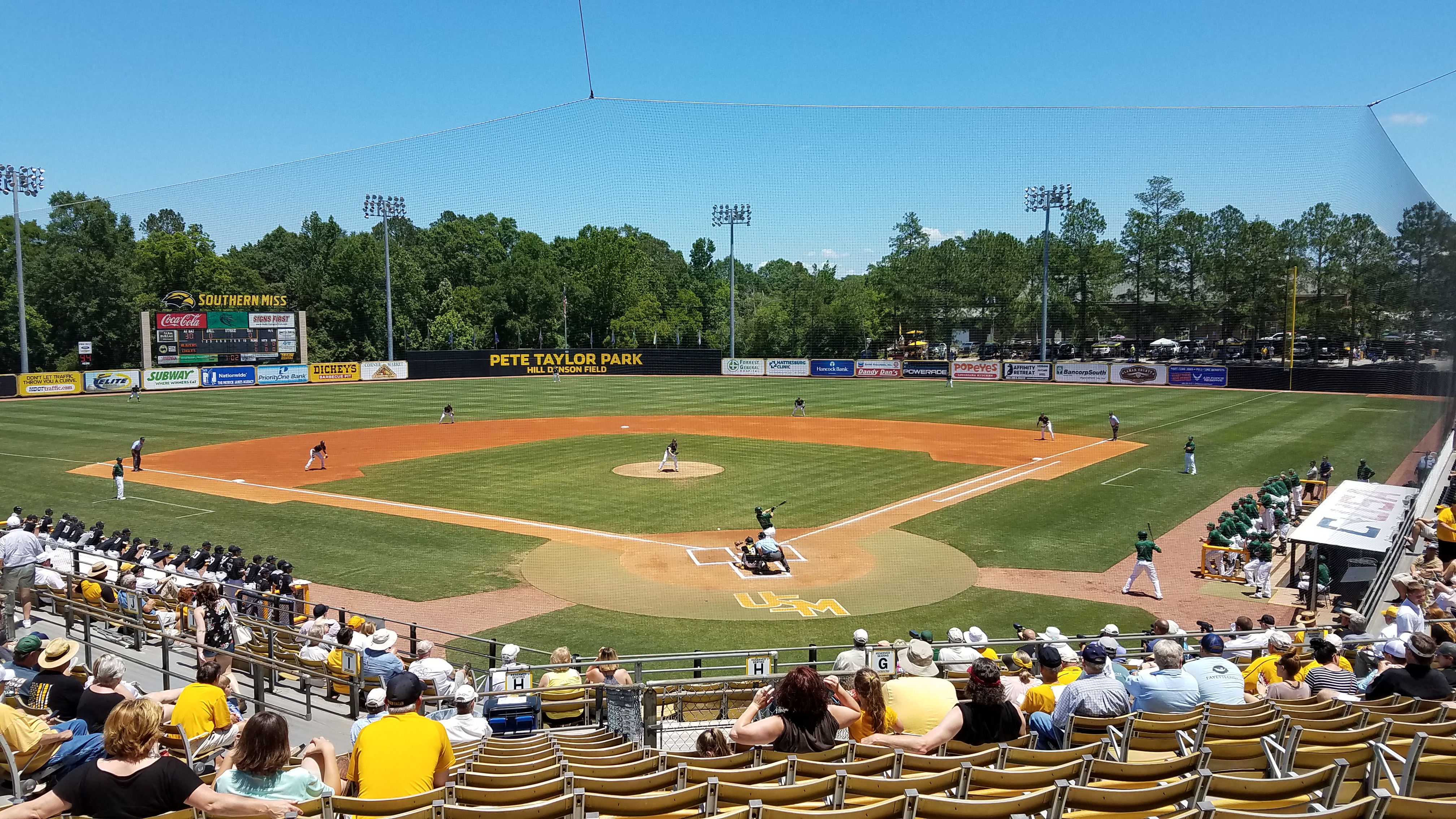 The Pete was only about 50% full on Senior Day and for a baseball team ranked in the Top 15, that seems disappointing. However, it should be noted Southern Miss does well for attendance in comparison with the rest of the NCAA. They annually draw numbers in the Top 25 of attendance standings and they, along with Rice, have by far the best fan bases in the conference. In addition, C-USA’s tourney was held the following week in Biloxi (1.5 hours away) and USM had a huge contingent there as they filled up a good chunk of the ballpark and made a lot of noise.