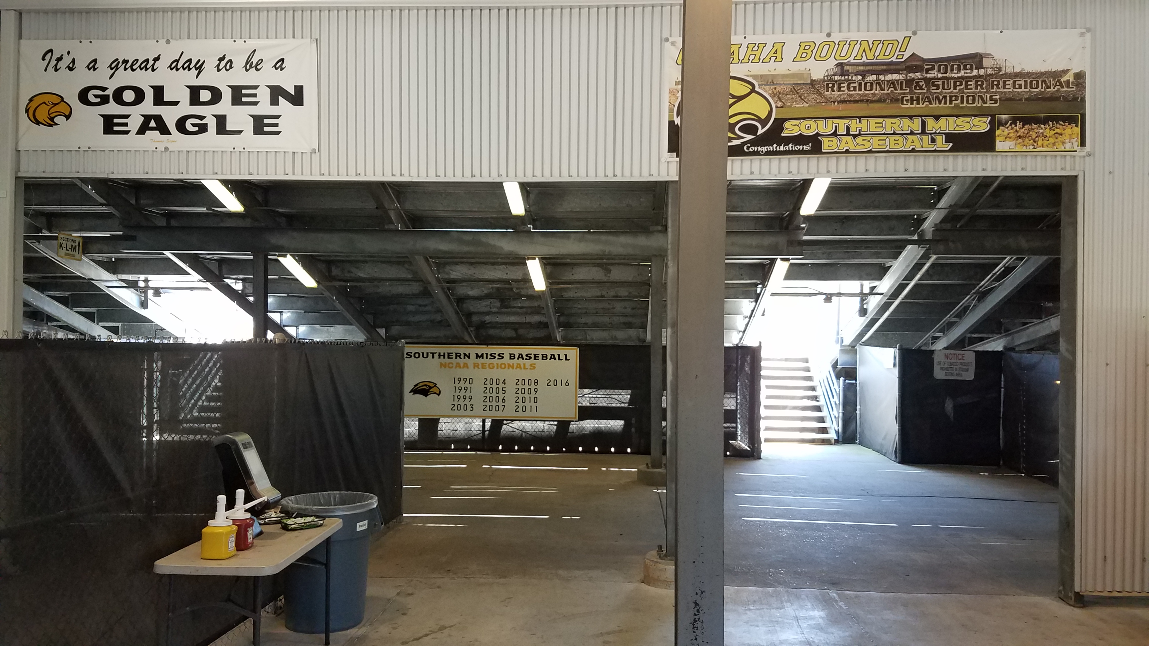 There are small, but multiple posters both in and out of the ballpark that display the team achievements by Southern Miss. These come in various forms and are done well. The 2009 team gets particular attention as they went to the College World Series and the long banner behind the first-base bleachers is one to check out as it includes a team picture from Omaha.