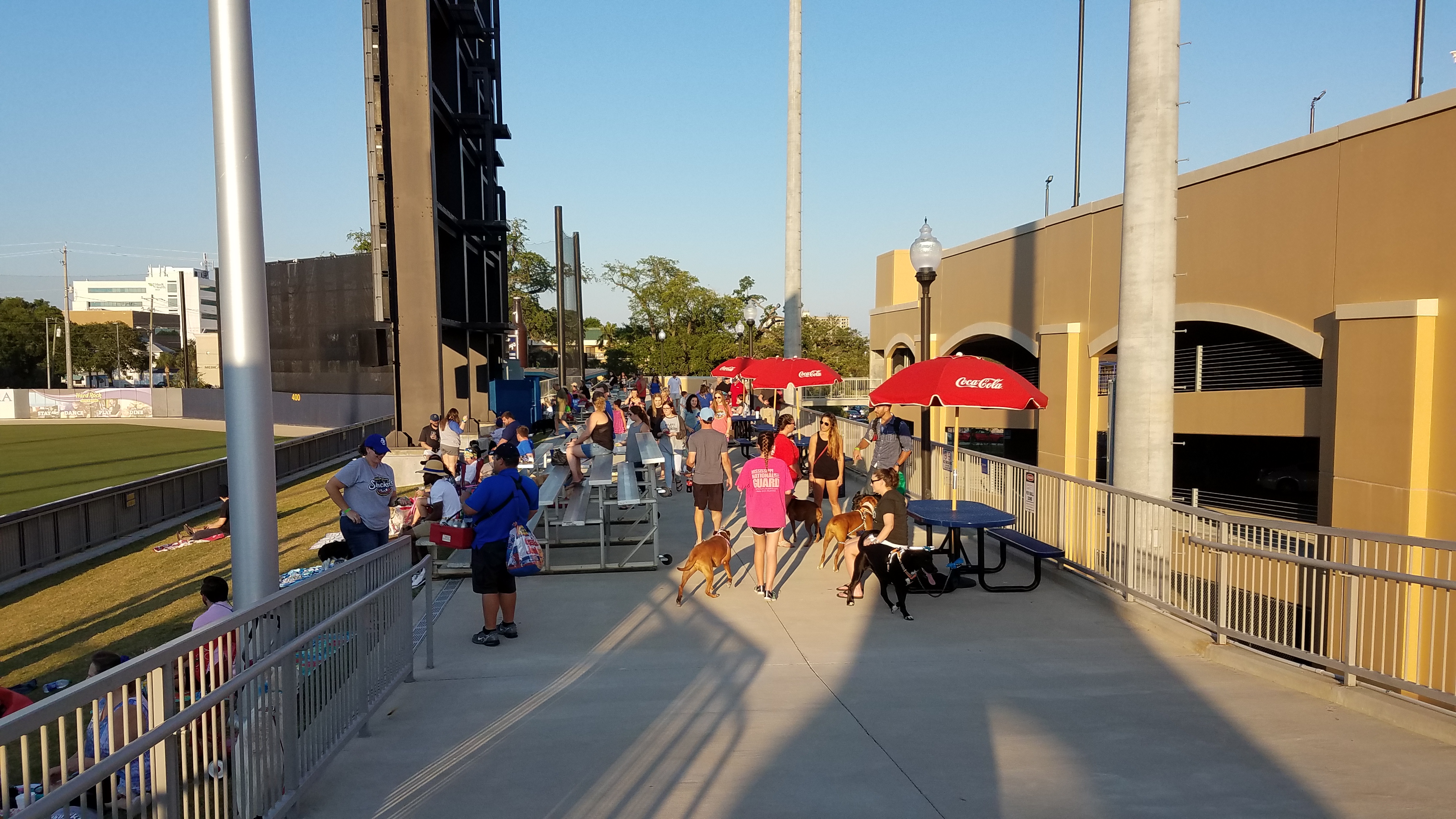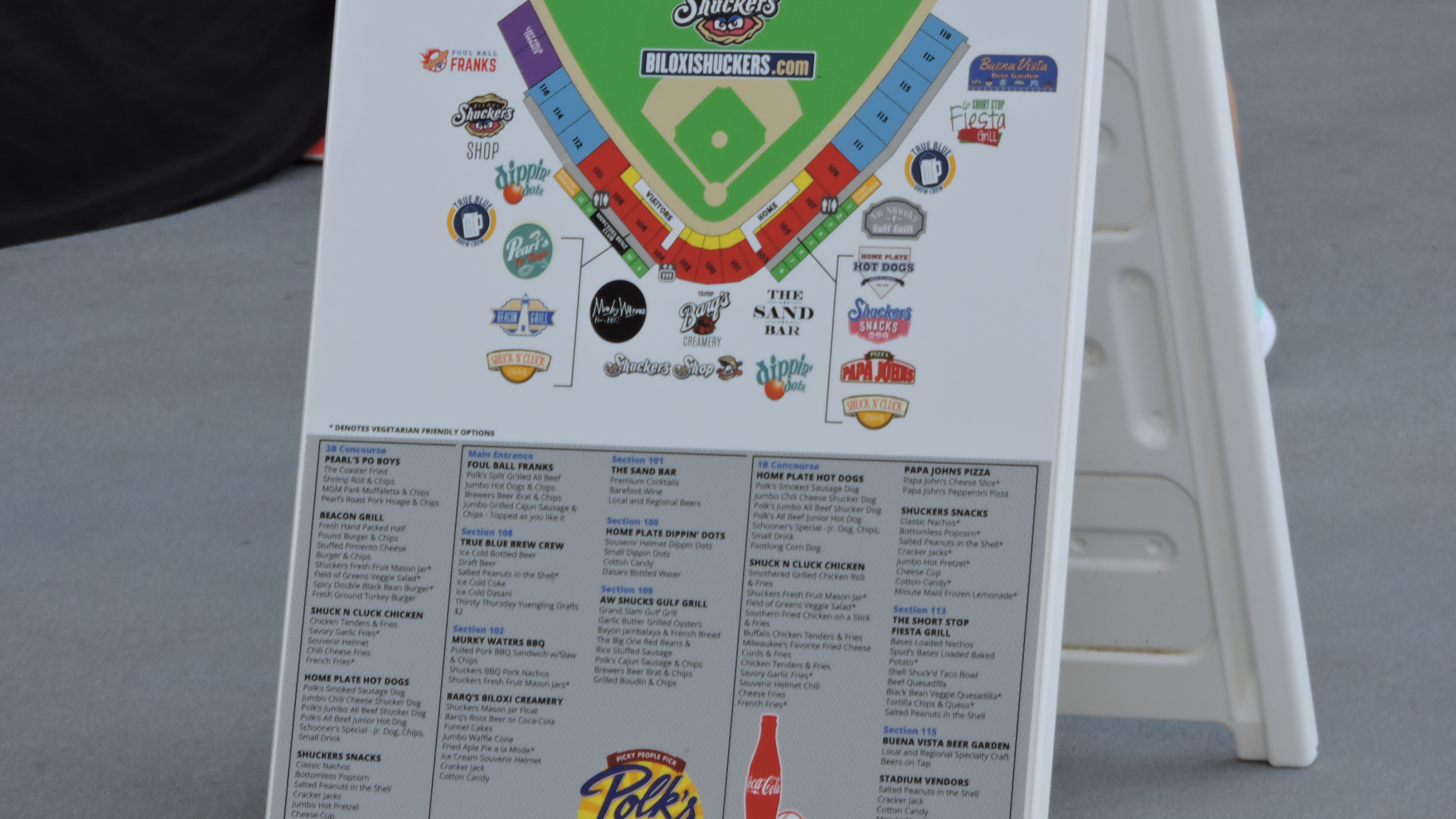 Concession stands feature cute titles and with a name like “Shuckers”, you should expect seafood available. It was, though not as obvious or easy to find as you would think. Once found, the Po Boy Shrimp Roll or the Garlic Oysters each made for a great choice. Regional favorites were aplenty with other varieties of Po Boys, Jambalaya and Southern Fried Chicken (on a stick). Overall, it’s an excellent menu with variety, local flare and taste. I opted for some Murky Waters BBQ and struggled to decide on a dessert between a Fresh Fruit Mason Jar or Apple Pie a la mode. Bonus point for having Cheese Curds, in a nod to their parent team, Milwaukee. Beer options were excellent too as a Beer Garden stand offered multiple choices from the Biloxi Brewing Company, Lazy Magnolia and Abita. Don’t forget Barq’s Root Beer, originated in Biloxi.