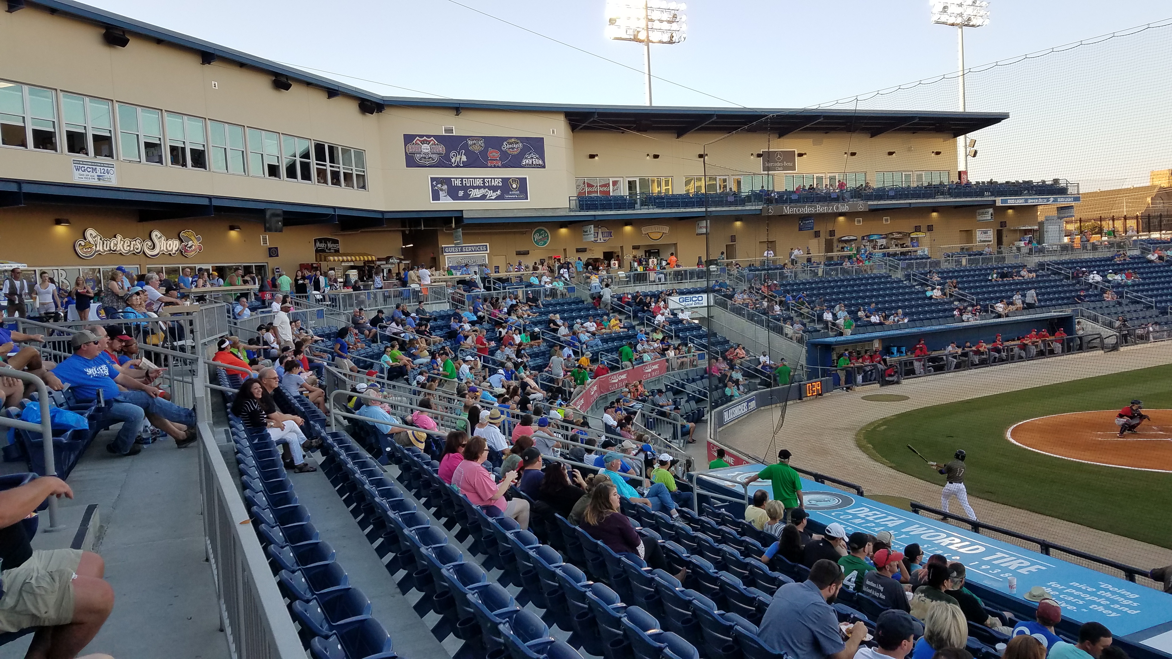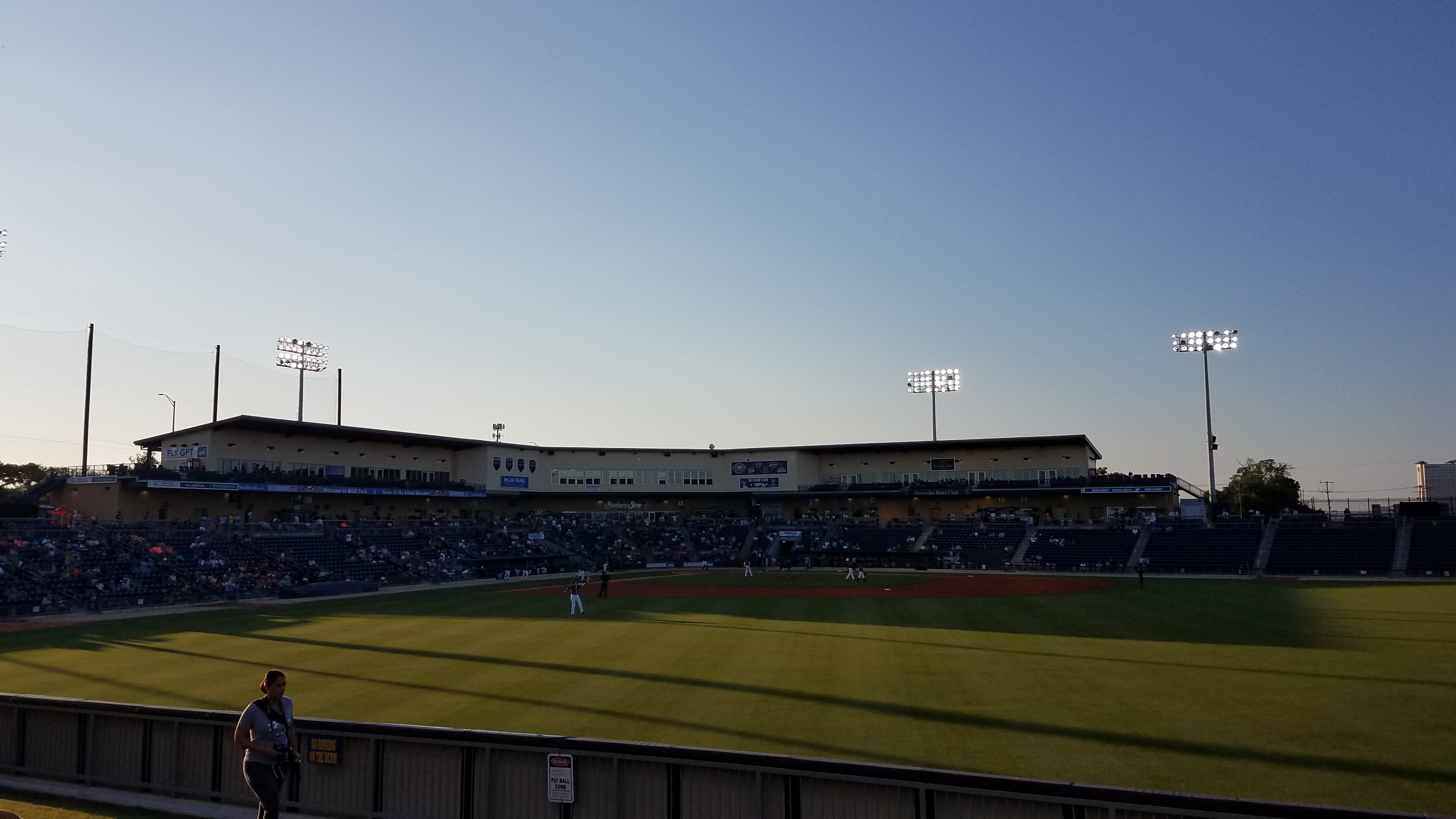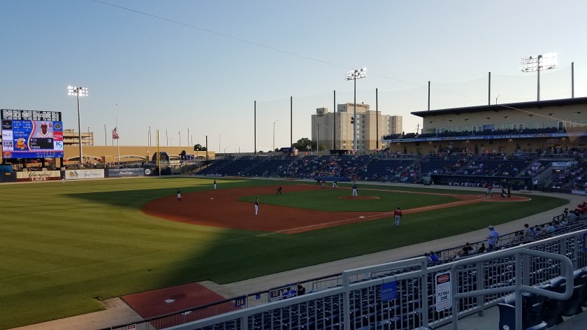For a Monday Night game, I was pleasantly satisfied with the turnout, which was maybe around 1,000. While Biloxi does not rate well in the paid attendance standings for the league (typically 8th out of 10 teams), they did draw decently during their playoff run in ’15. Playoffs are a much better indicator of fan support and the Shuckers averaged 2,874 over four games. Going back and looking at each team’s last postseason appearance, only four other teams drew more. I know the city would like to see more fans at the ballpark and there likely is concern about what happens when the novelty of a “new” team wears off, but my very small sample size leads me to believe there is better fan support than for others in the league. As for the crowd that I monitored during the game, it was typical minor-league baseball reactions and atmosphere.