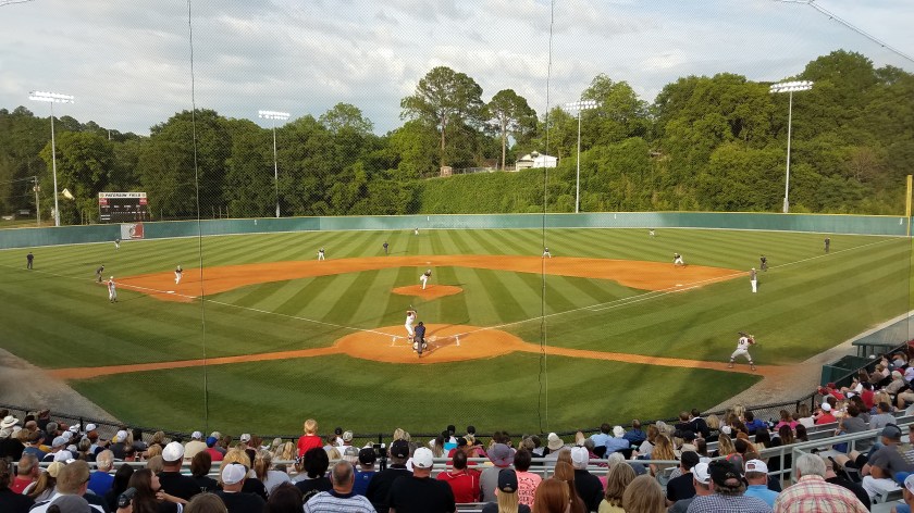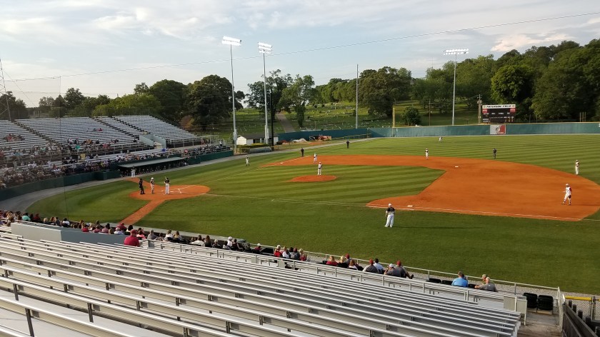 The next destination during our vacation down South brought us to the state of Alabama and its capital, Montgomery. Located in the south-central part of the state along the Alabama River this city of 200,000 has had a tumultuous history from being a center in the slave trade during the 1800s to playing a vital role in the Civil Rights movement during the 1950s and 60s. Despite the injustices and horrors that occurred, Montgomery has come to rightly honor that history and it has developed into a modern city that is both desirable to live and visit. Downtown revitalization, historical sites and renewed focus on the nearby river made this a great place that I really enjoyed touring. While baseball is typically centered at Riverwalk Stadium in the heart of the city, the former primary ballpark for Montgomery still remains active. Paterson Field, built in 1949, hosts a game (typically Game 1) in the Best-of-3 Championship Series for each classification in the Alabama State High School Baseball Tournament. We were on hand to see the first game of the 5A Championship as Faith Academy (Mobile) tried to stop Russellville from winning their 3rd straight title. Paterson is a simple field that does not have much historic charm for a place built nearly 70 years ago.