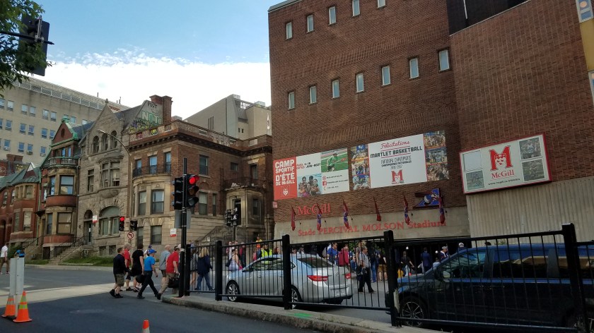 An interesting, urban location typically goes hand-in-hand with difficult accessibility and this stadium is no different. Montreal is a very challenging place to drive as commuters have to deal with tight streets, frequent construction, lots of traffic, plenty of pedestrians and for some, a foreign language. That and limited parking in the area makes driving to the game nearly impossible. It is advised to find a Metro Station with free parking and take either the Green Line to the McGill stop or the Orange Line to Victoria Square. From there, either make the long walk up the hill, or take the free shuttle bus to the stadium. The bus works well, but I did have some issues. Going to, the first bus was nearly 15 minutes late and leaving the stadium, the bus skipped the first two scheduled stops (according to the website) and just went to Victoria Square.