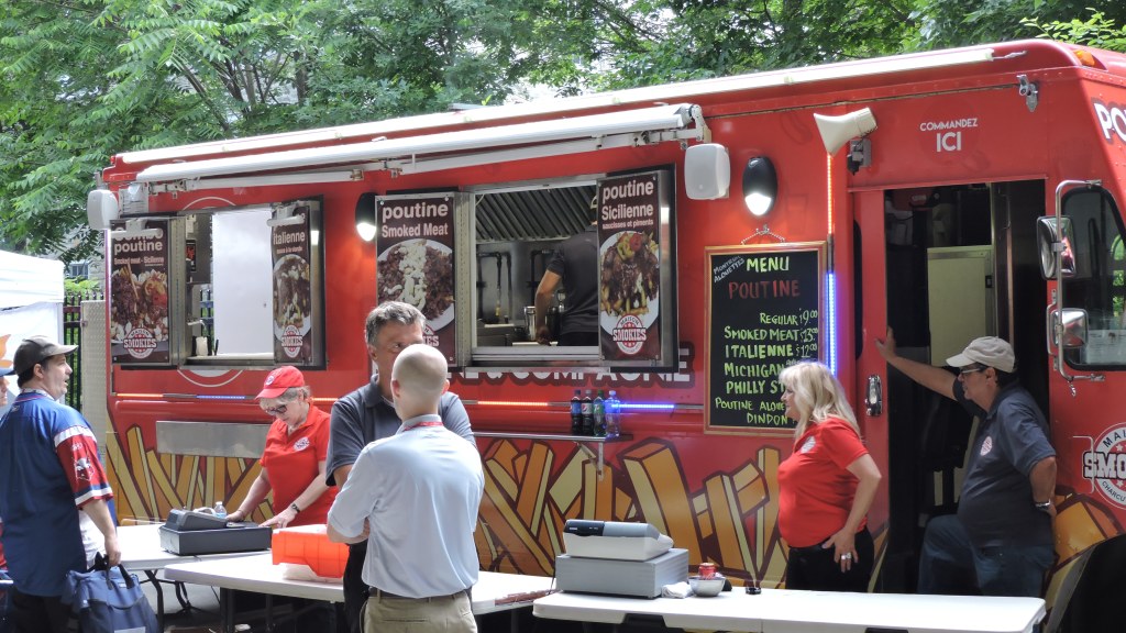 The tents in the Fan Zone have a nice variety of beer, including locally produced Archibald. Food looked similar at most stands as hot dogs seemed to be available everywhere. It wouldn’t be Montreal without Smoked Meat or Poutine and while limited, both were findable and delicious. Food trucks outside the stadium provide a much better variety.