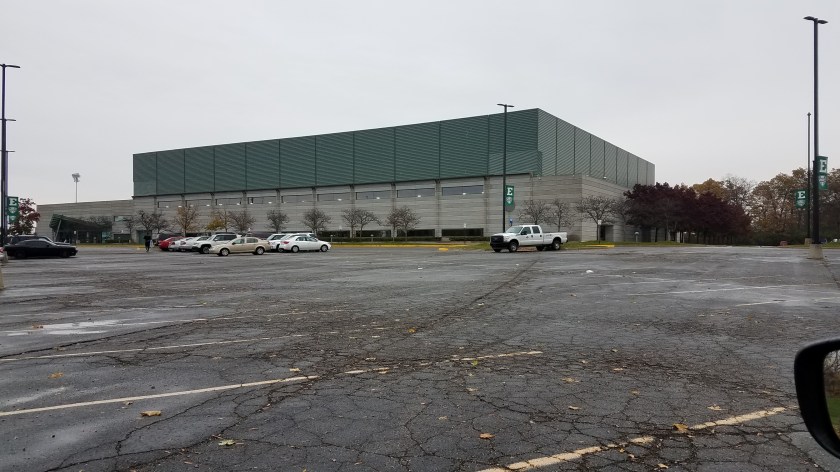 The final arena on a four-game trip to Michigan ended with an afternoon matinee at the home of Eastern Michigan University. This large public school is located in Ypsilanti (Ip-Sil-Anti), a city of only 19,000 in the southeast part of the state. Named after a General from the Greek Revolution, Ypsilanti is a grittier, more industrial town compared to their popular neighbors 20 minutes away in Ann Arbor. Eastern Michigan became a Division I school in the mid-1970s when they joined the MAC. Their basketball team had a period of success from 1987 to 1998, when they made the NCAA Tournament four times and won the conference regular-season title thrice. Those years were the only times the Eagles have achieved those accomplishments. The Convocation Center was built in 1998 and it is one of the nicest homes in the MAC. Too bad very few come out to see the team that plays in it.