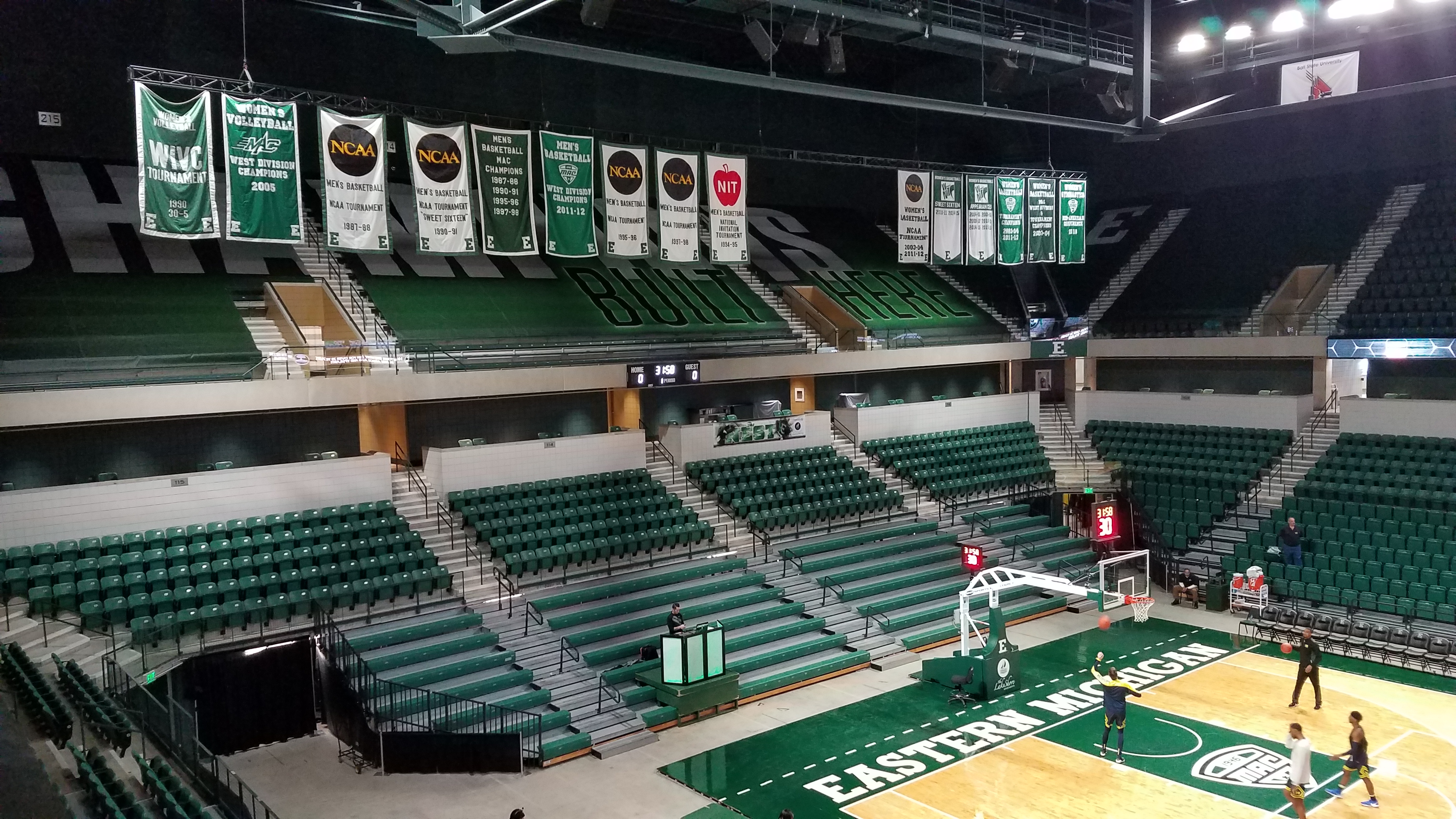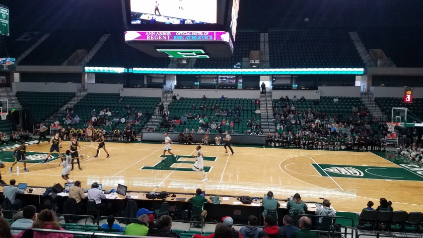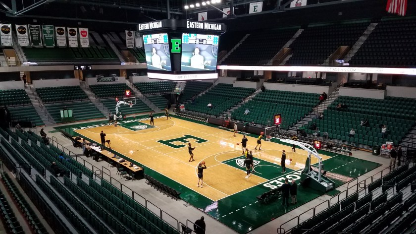 Often derided within league circles, Eastern Michigan struggles to bring in fans for basketball games. I counted a grand total of 325 in attendance, 20 of them students in their own section. I know it’s hard to get up for an NAIA school on a Sunday Afternoon, but things aren’t much better during conference play as they are perennially at the bottom of the league in the attendance rankings. Last year’s season finale was only the 3rd time in 12 years that announced attendance was over 3,000 (and that’s still less than half the building).