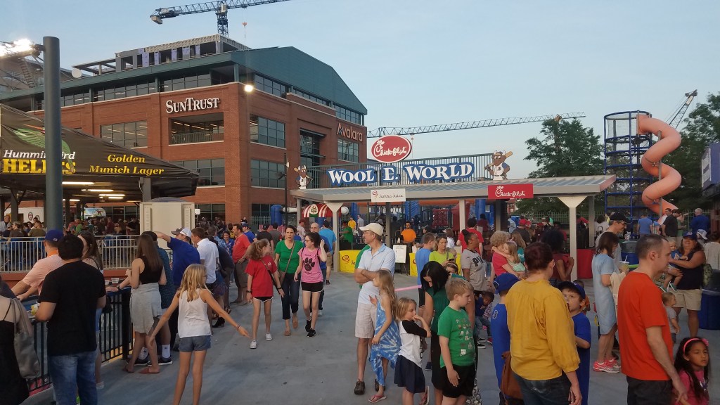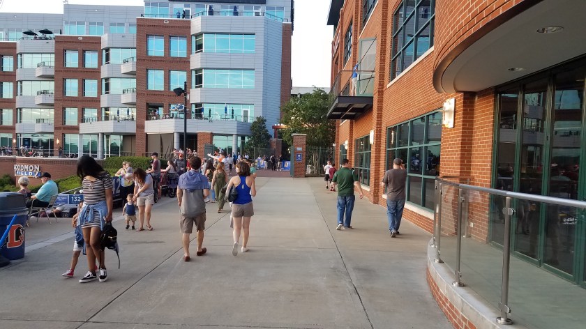 Parking is $6 in the American Tobacco garage, or if you are comfortable with city driving, you can try and find a spot on the street for free during the evenings. A good chunk of the seats in the park are reasonably priced at $8 – $12 and this compares favorably with divisional compatriots. Online surcharges add a few bucks, as do if you wait until the day of the game. The only thing that is out of whack are the $24 “Field Level Premiums”. There doesn’t seem to be anything special with these seven sections that go around home plate (unless they come with food service that I didn’t know about it). They still don’t seem worth it given the little value of being that much closer. Food prices have a Major League feel as it is $8 for a burger, $5.50 for a hot dog (with chips) and a whopping $10 for one of the craft beers.