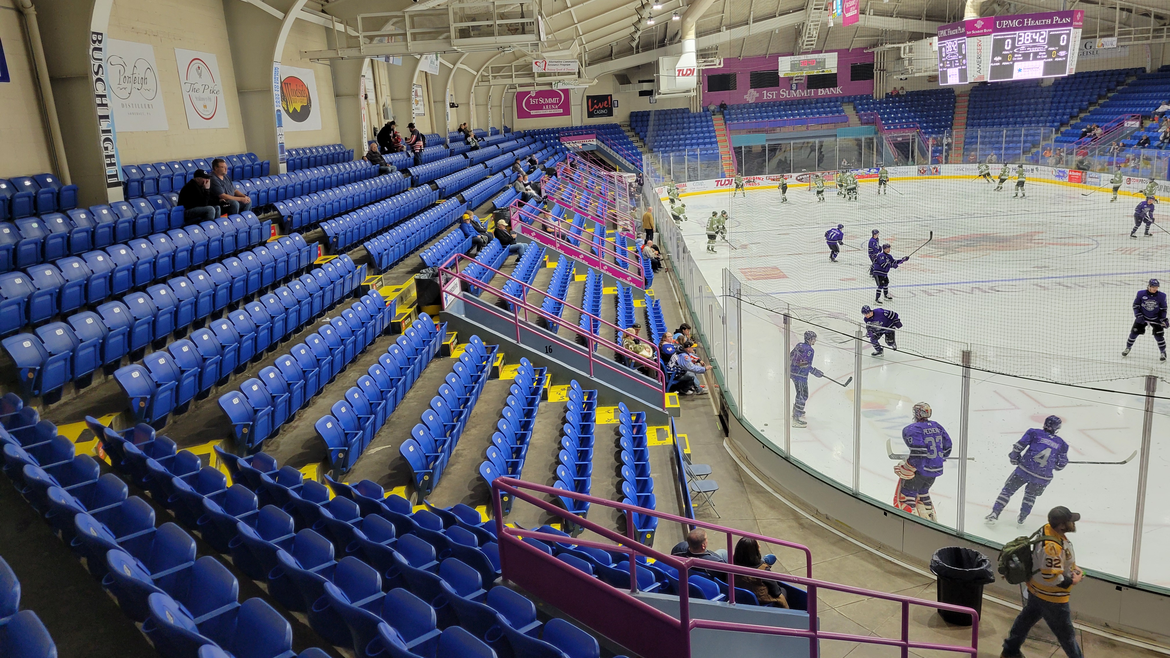 The aforementioned lobby has enough space and is decorated really well as a memorial to veterans. From there, the concourse that circles the area is small. Like really small. In fact, the whole arena footprint is confined, as evidenced by the fact that locker rooms are through doors at the concourse level and players go through it to reach the ice. That certainly makes for a funny visual when getting popcorn and someone has to go the locker room after a fight. The Zamboni also has to work in tight quarters as the driver makes a k-turn outside the rink to get the machine in the right position in the corner concourse. Also, watch out for the floor cleaner and dumpsters around this corner, things visibly out in the open as opposed to in a storage space (which maybe the arena doesn’t have?). The narrow concourse does circle the entire arena .