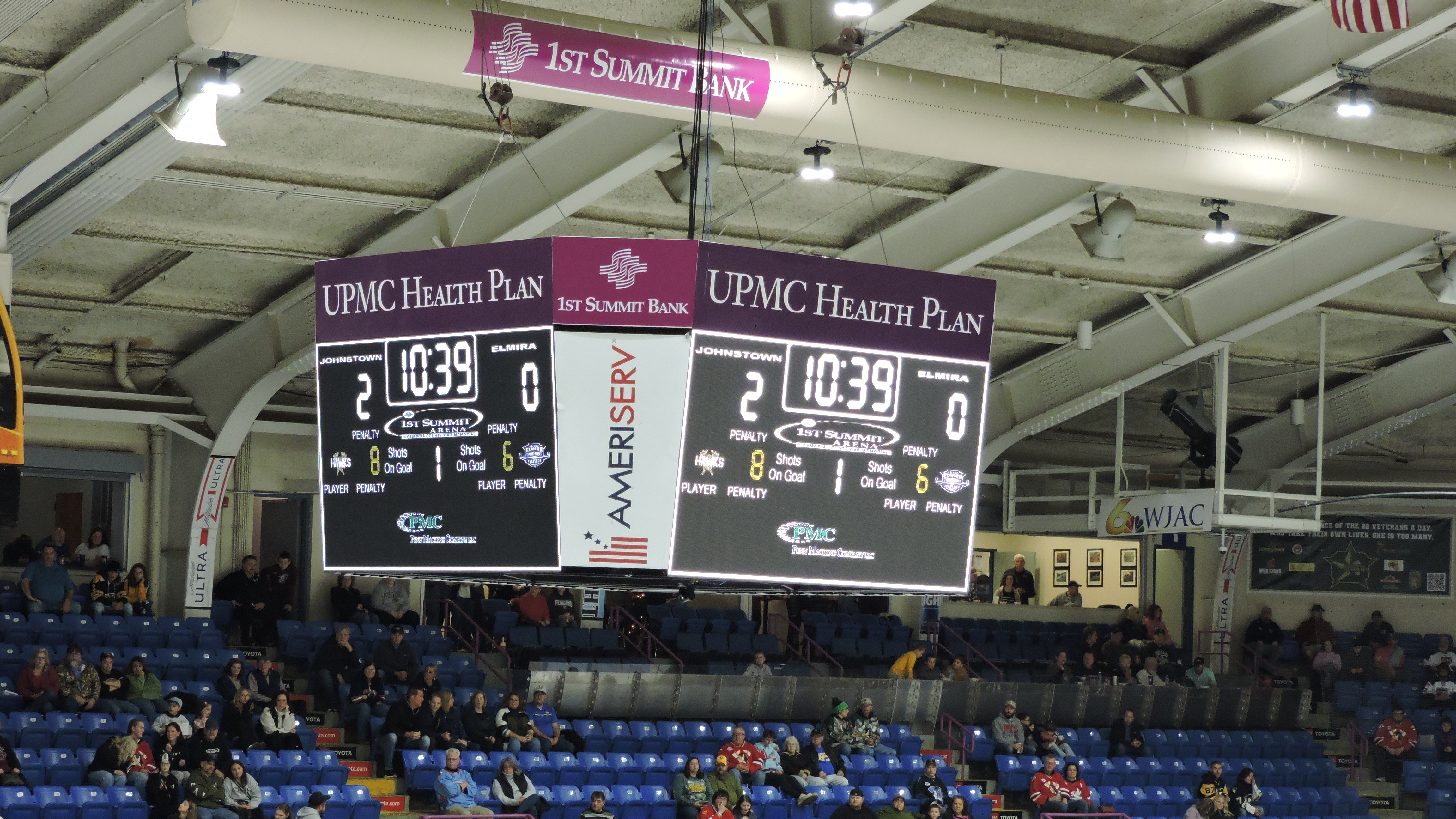 The atmosphere was good, but I had higher expectations coming in. I thought I’d be getting that old-school hockey crowd (like Utica or Glens Falls) where fans would harass the refs, use cowbells and react to generally everything. That wasn’t quite the case in Johnstown and while yes, there were some cowbells, the noise levels in the building didn’t have that extra juice I was hoping for. It’s not a negative on the atmosphere, it just was average. It may feel a little unjust comparing this place to the Minor Leagues, when it is in fact home to Tier II Junior Hockey, but this is a minor-league arena and not a small community rink. Each goal was met with a good pop as fans clapped loudly and let out a “Yeah”. This was quickly drowned out a very loud and long-lasting goal horn. Nobody really stood when a goal was scored and as the game was tight in the 3rd period, it took the PA to egg on a “Let’s Go Hawks” chant. The fan base is knowledgeable and attentive as clearings on penalty kills were cheered, while solid plays and hustle was also rewarded with applause.