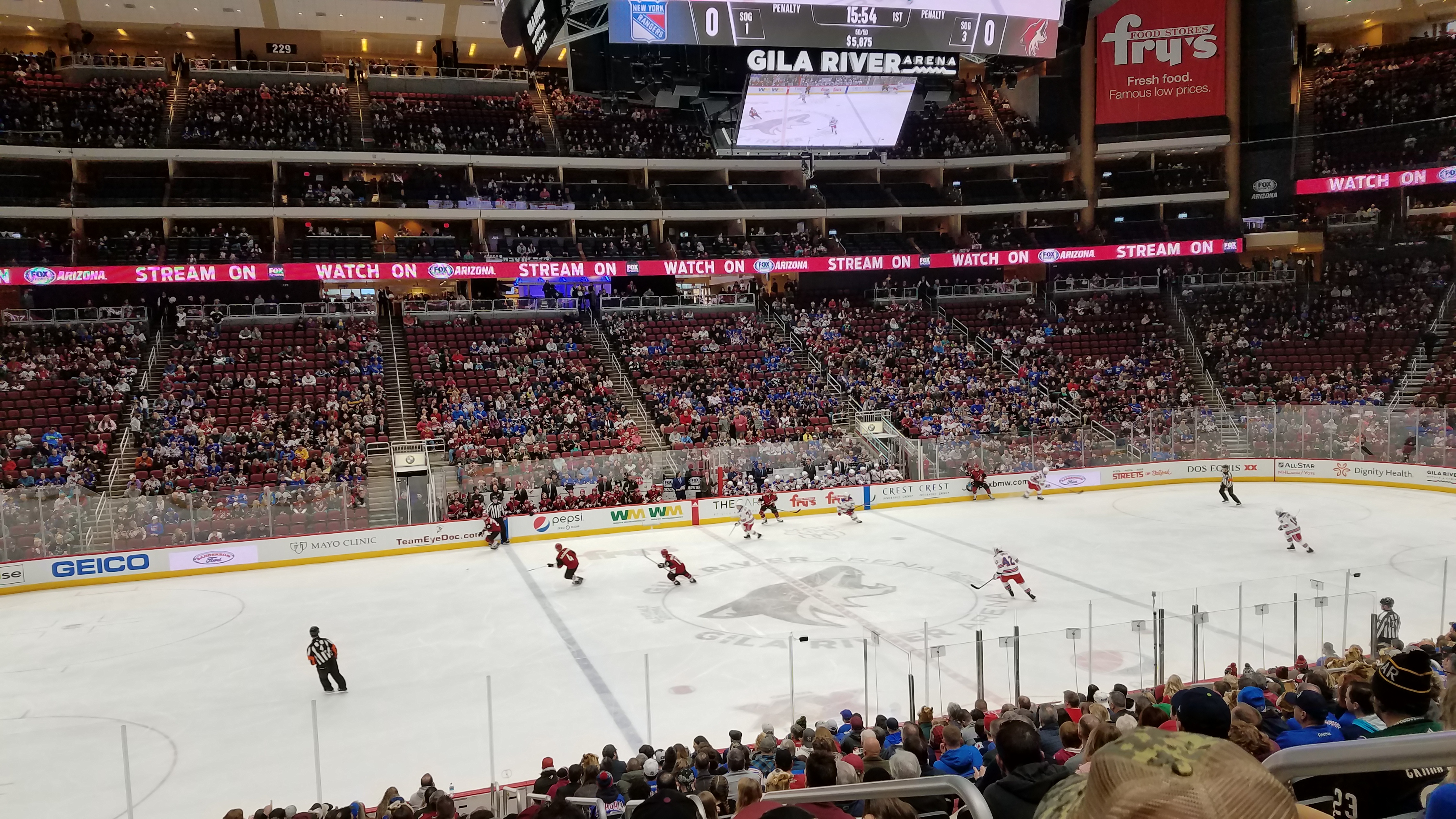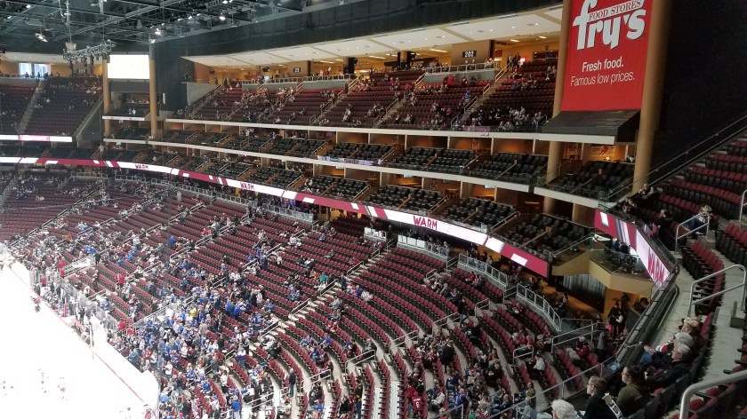 On a business trip to Phoenix, I was lucky enough to have a free Sunday afternoon to see a matinee game with the Arizona Coyotes. Located in Central Arizona, the Sonoran Desert is known for oppressive heat, but our visit was actually chilly as we were there on a rare rainy day. The team moved from Winnipeg in 1996 and it’s been a tumultuous time in the desert ever since. Substantial financial woes led to ownership going bankrupt in 2009 and the NHL took nearly four years to find someone that wouldn’t move the team. From there, it’s been a complicated and heated relationship between the Coyotes and Glendale, a suburb of Phoenix. The whole thing is headache-inducing as the city throws tens of millions away for debt and management fees while team ownership wants out of their 16-year-old, completely adequate arena so that they can be “financially viable”. For now, the team is renewing the lease on an annual basis. On the ice, the Coyotes have only made it out of the first round of the playoffs one time and they have yet to return to the postseason after a three-year stretch ending in 2012.
