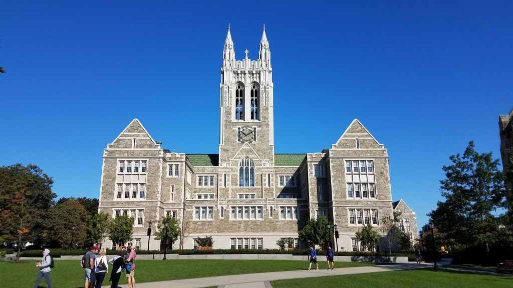 Depending on your mode of transportation, it’s about 25-45 minutes to reach most of Boston’s attractions and if you have the spare time to explore, I would certainly try to do so. For this game, time was limited. Thankfully, I toured most of this striking campus during football season, getting the chance to see a distinctive gothic design, one of the first schools done in that fashion. Our walking tour consisted of beautiful Gasson Hall and Bapst Library. Both are in middle campus, uphill and relatively close to the arena. Outside of BC, you can drive in either direction on Beacon Street to find some dining or drinking establishments.