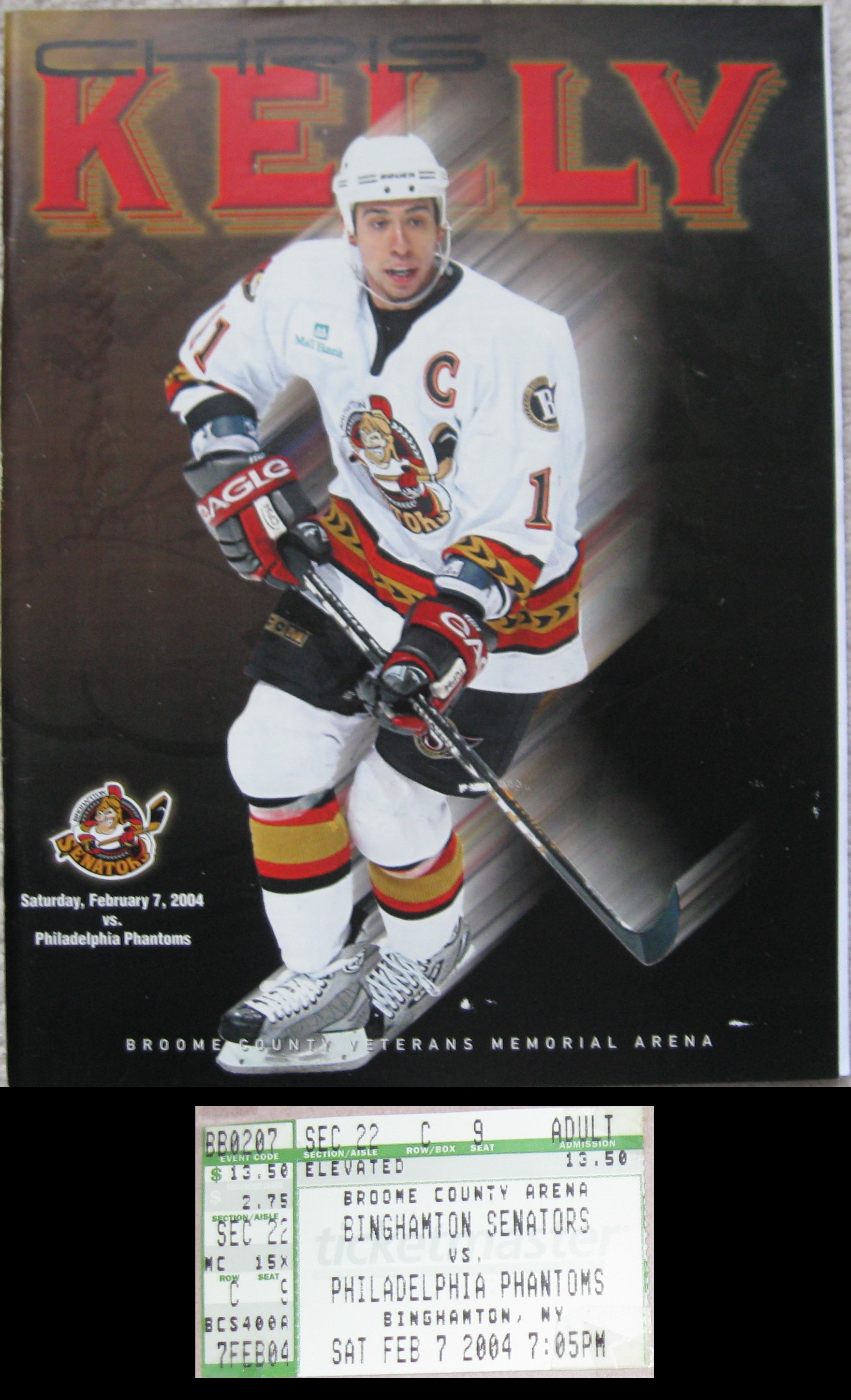 I was quite disappointed with the attendance and atmosphere on my second trip. The building was 65% full and announced attendance for the game was 3,015 with the atmosphere nowhere near what I saw in 2004. Average numbers put the B-Sens at the bottom of the AHL and you can’t hold the small capacity of the building against the team when it’s not being sold out. It was a Friday Night game and according to people there, Saturday games are better draws (in fact the next night, announced attendance was 4,019). Maybe also being in last place contributed. A few fans around me commented on the low attendance and that usually it’s so loud in there you can’t hear other people talk. That was what I experienced in 2004 as the barn was noisy with an energetic crowd through the game. There was a playoff feel and occasional “Let’s Go Sens” chants as lots of fans waved Senators flags. Eight years later, the buzz diminished, but at least there still was decent noise after goals.