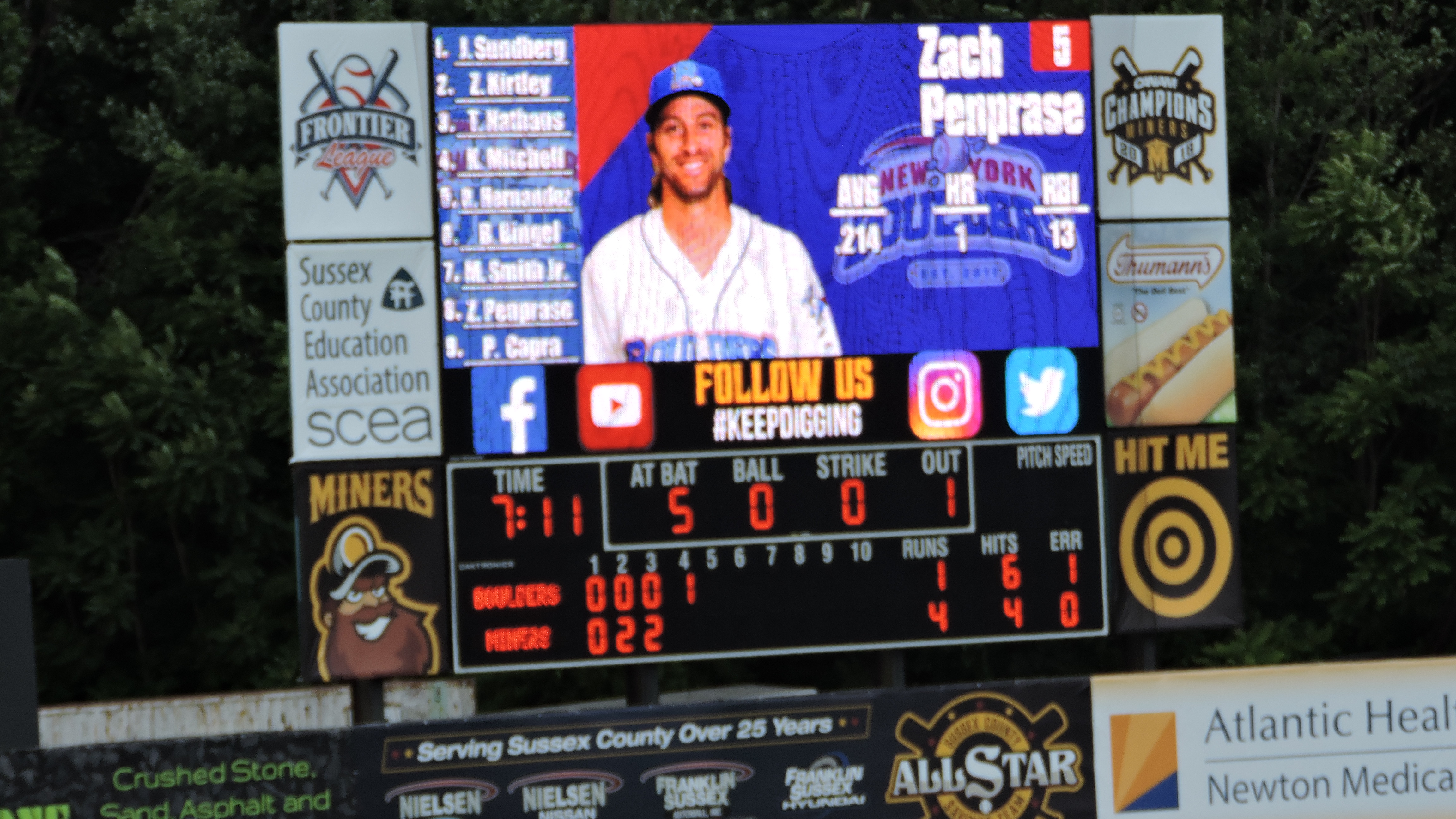 The scoreboard is left field features a decent-sized video screen. During play, the lineup card and a few player stats are shown with a picture. They don’t use the board often enough for video. Otherwise, the line score is fixed at the bottom and the sides feature logos and ads.