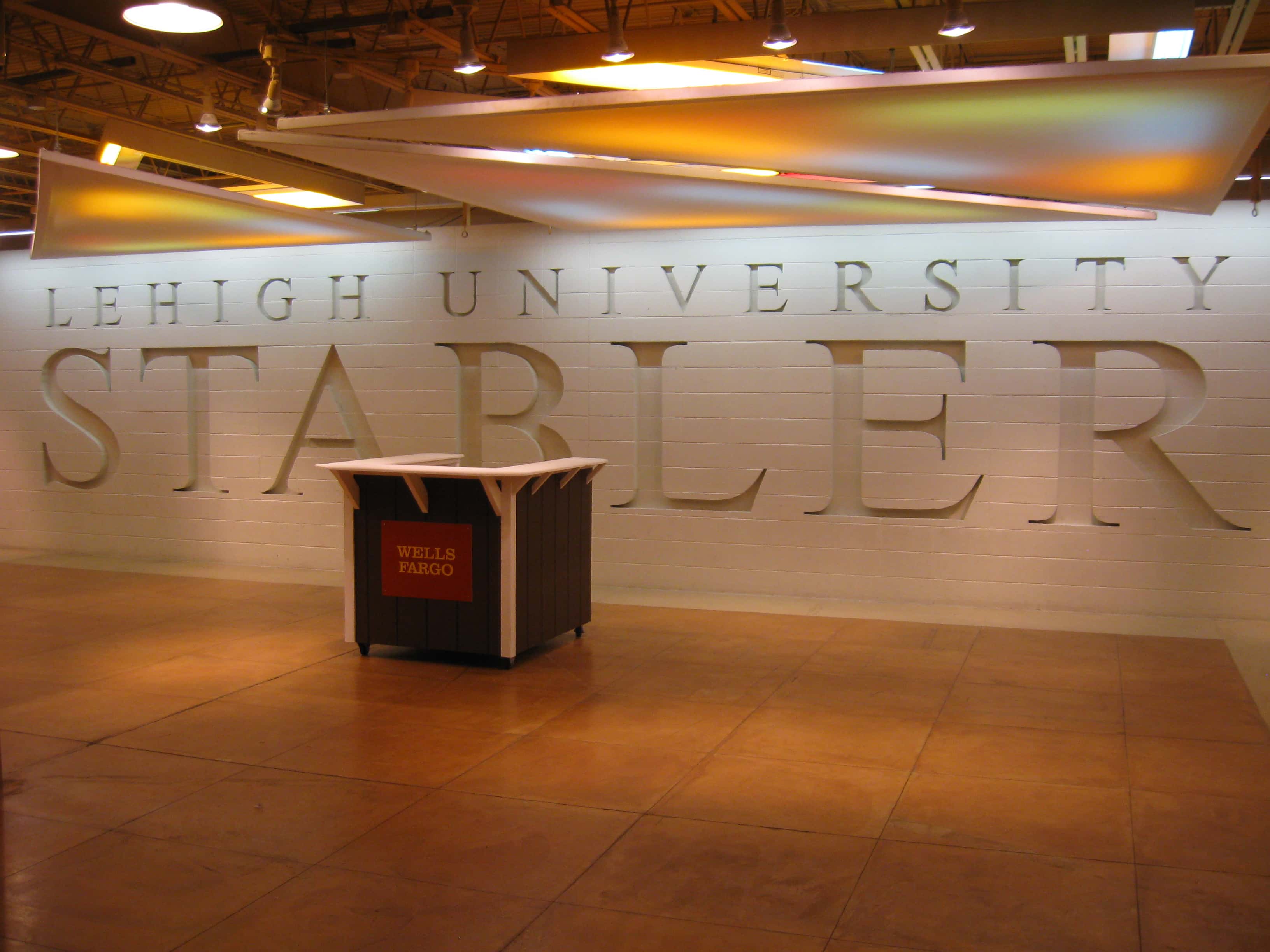 In the opening entranceway, the first noticeable thing is the giant indented lettering of “Lehigh University” and “Stabler” on the white wall. It’s actually quite odd. This section also contains portraits of the Stabler family. The nearby plaque is worth a read as the gift was in honor of Donald Stabler’s parents, who greatly helped in his education. Further around the concourse are team pictures in various sports. Inside the arena, wall paintings are in place of banners as team and player accomplishments are at each end.