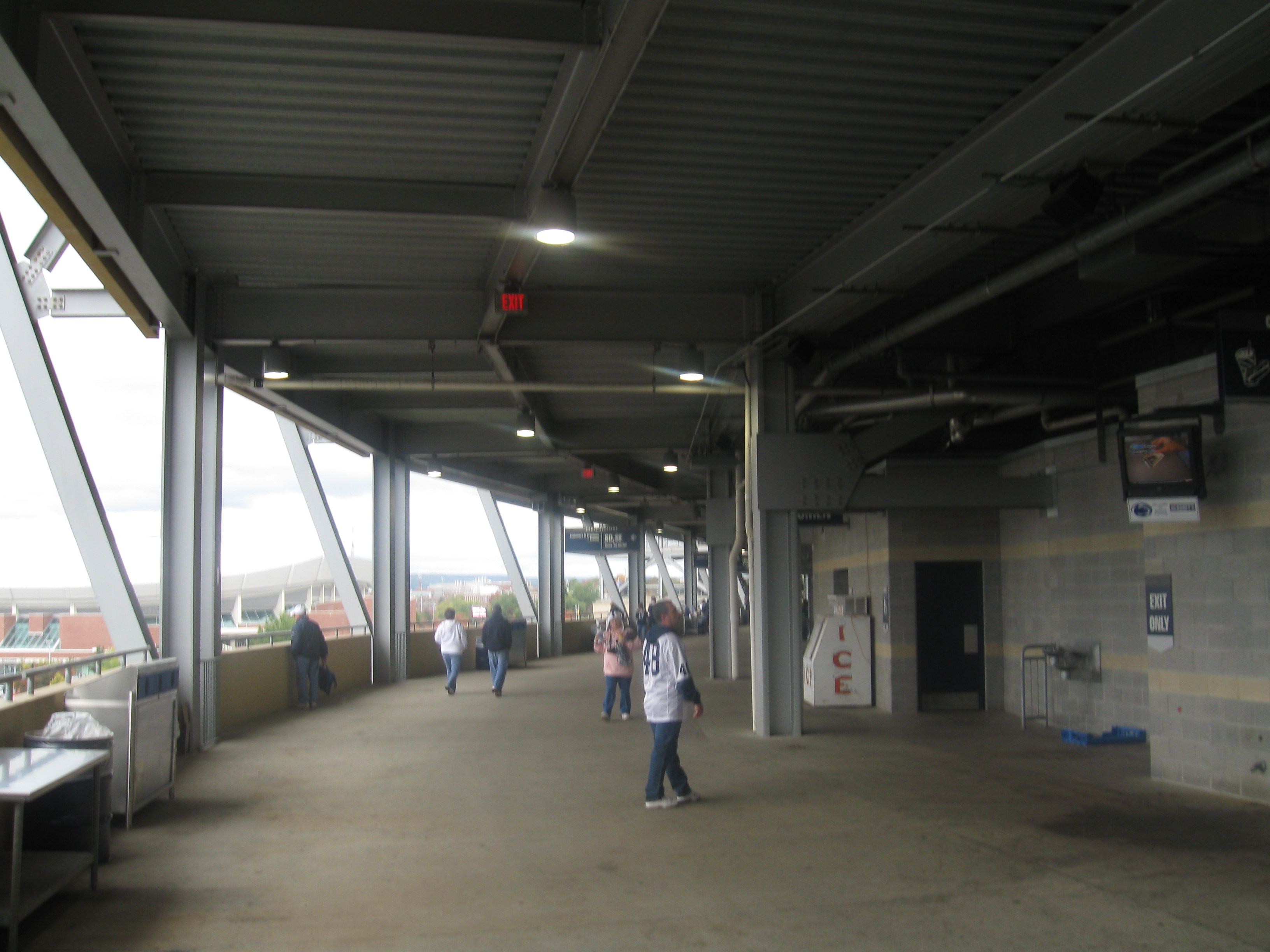 Walking up to the stadium is a small brick wall with “The Pennsylvania State University” written on it. The exterior of Beaver Stadium isn’t great as it is mainly just the back of the inside features. There are a lot of beams, winding stairwells and windows for club seating or football offices.