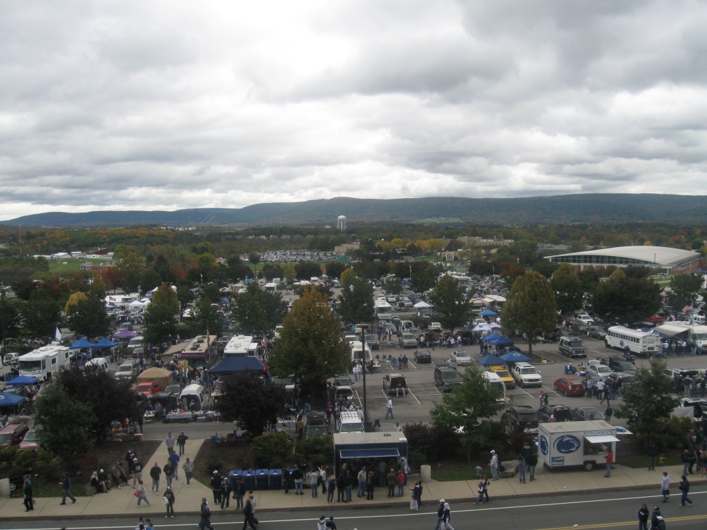 Most folks use I-80 to US-220 and then it’s pretty straightforward after getting off at Exit 74 for the parking areas and stadium. From the south, it’s less straight-forward as the mountainous terrain means that a more roundabout way (I-99 or US-322) is needed. In the area, everything is very well organized as people direct you to appropriate lots around the grounds based on the color of your parking pass (if you don’t have one, there are directions to general lots too). We lucked out with parking as we were in a grass lot which had assigned spaces and had an easy in/out, but most parking seemed easy. The majority of the lots are grassy as the paved ones are for premium donors and ticket holders. The staggered arrival and departure for many because of tailgating allows for stadium traffic to not be that crazy.