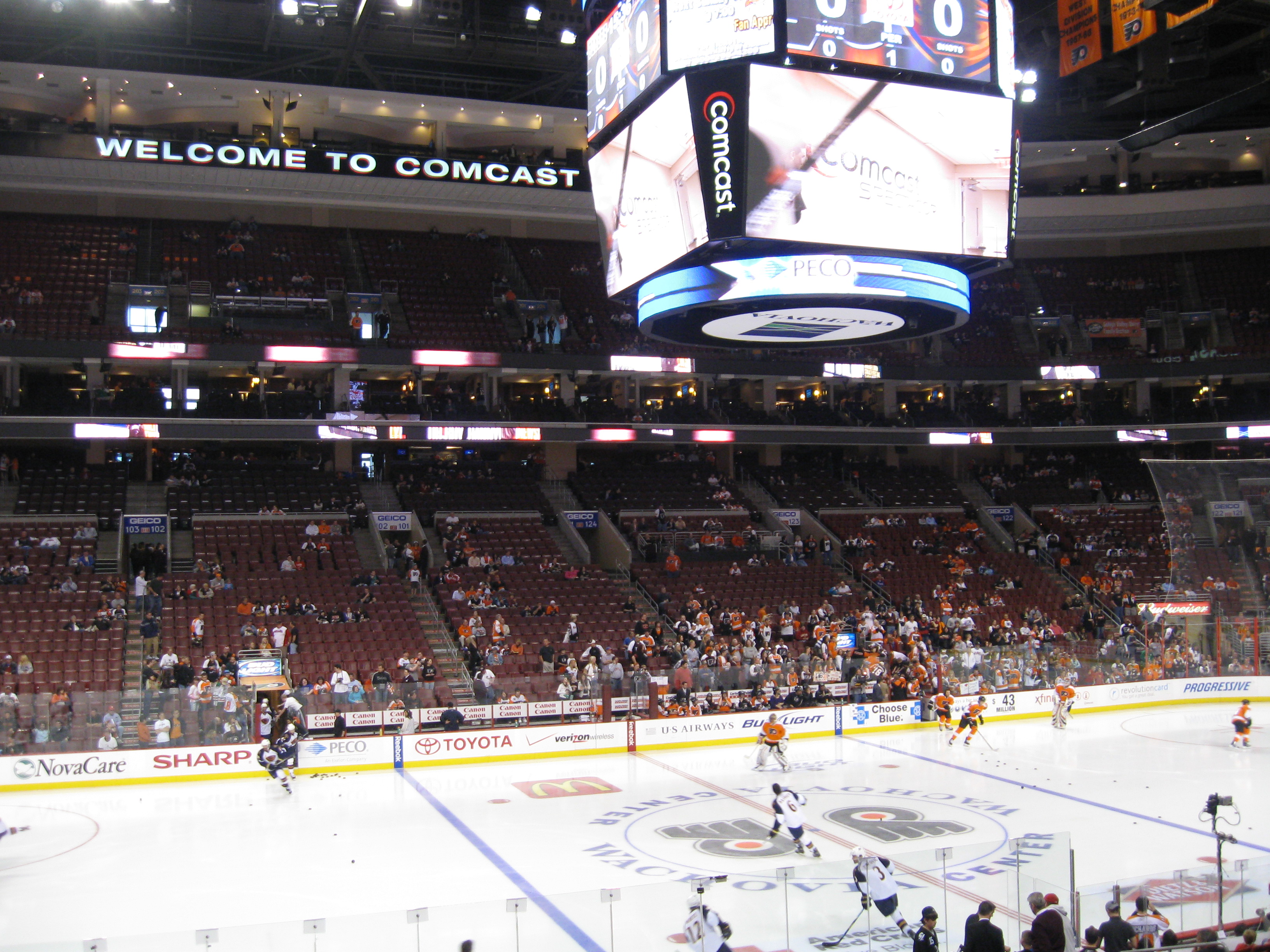 Our tour of Philadelphia continued as we visited the Wachovia Center, our 3rd stadium in the city within the last nine months. The City of Brotherly Love is the fifth largest in the U.S. and is located in the southeast corner of Pennsylvania, between the Schuylkill and Delaware Rivers. History has a big place here and there are many places to visit that feature Philadelphia’s storied past. It was a 75-degree March day when we visited and the conditions were perfect to explore the city before heading to the Sports Complex in South Philadelphia. The Wachovia Center opened in 1996 and replaced the Spectrum as the home to the Philadelphia Flyers (along with the 76ers in the NBA). The Flyers are one of the more successful franchises in the NHL as they have made the playoffs 34 times out of their 42 seasons. Two of those resulted in Stanley Cup championships, but that was in the early-mid 1970s and the fans are eager for another title. Nicknamed the “Broad Street Bullies” after their usually rough and tumble ways, the Flyers play in a loud arena with a great, but tough atmosphere.
