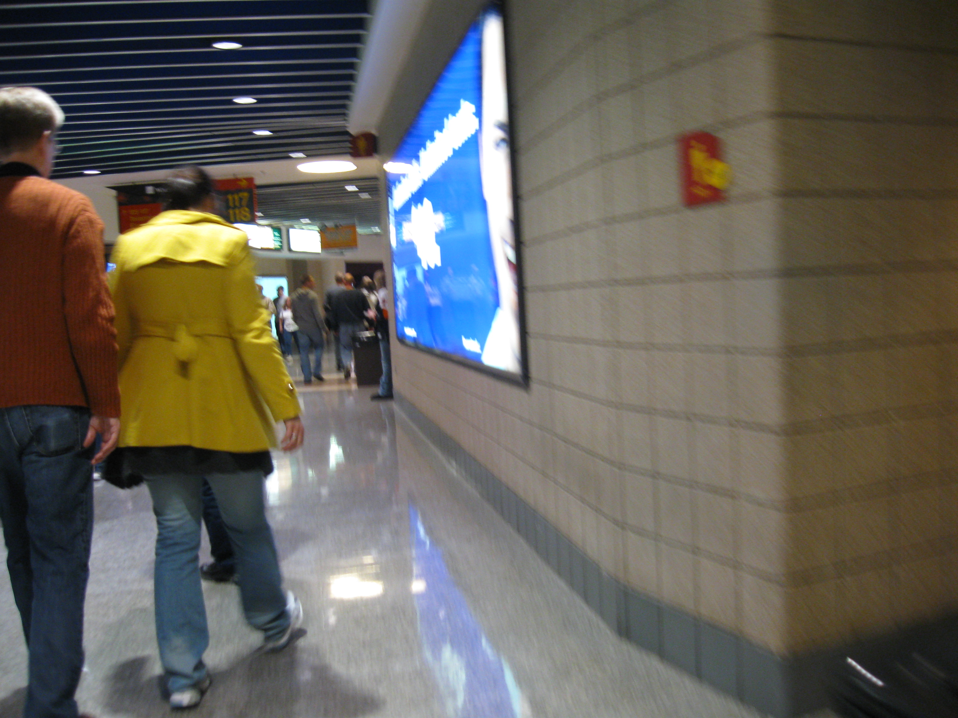 Fans at Flyers games are as passionate as they come as all of the attention is focused on the game and action on the ice. It was rare to hear a side conversation or people getting distracted, they are here for hockey and they know the game really well. This was very refreshing to see at a sporting event and made for a terrific atmosphere to watch a game. Wachovia Center helps this along nicely as there was no mascot and no t-shirt toss. Just simple intermission contests and TV-timeout videos. It seemed like almost every fan had some sort of Flyers gear or jersey on and the building turns orange when the playoffs come around. Crowd noise was great and the most common chant was “Let’s go Flyers”. Their first and only goal brought just about everyone to their feet and Wachovia Center becomes a very loud building. Fans are passionate both good and bad. At our game, I didn’t see any mean-spirited, obnoxious jerks, they were just rough on their team when they feel it was deserved (however, keep in mind this game was against blah Atlanta). Home goalie Brian Boucher took the brunt of it during this game and at times the boo-birds were out. After a demoralizing goal late in the third, just about half the arena got up and angrily stormed out, not to beat the traffic, but because they were mad and knew the game was over (which it was).
