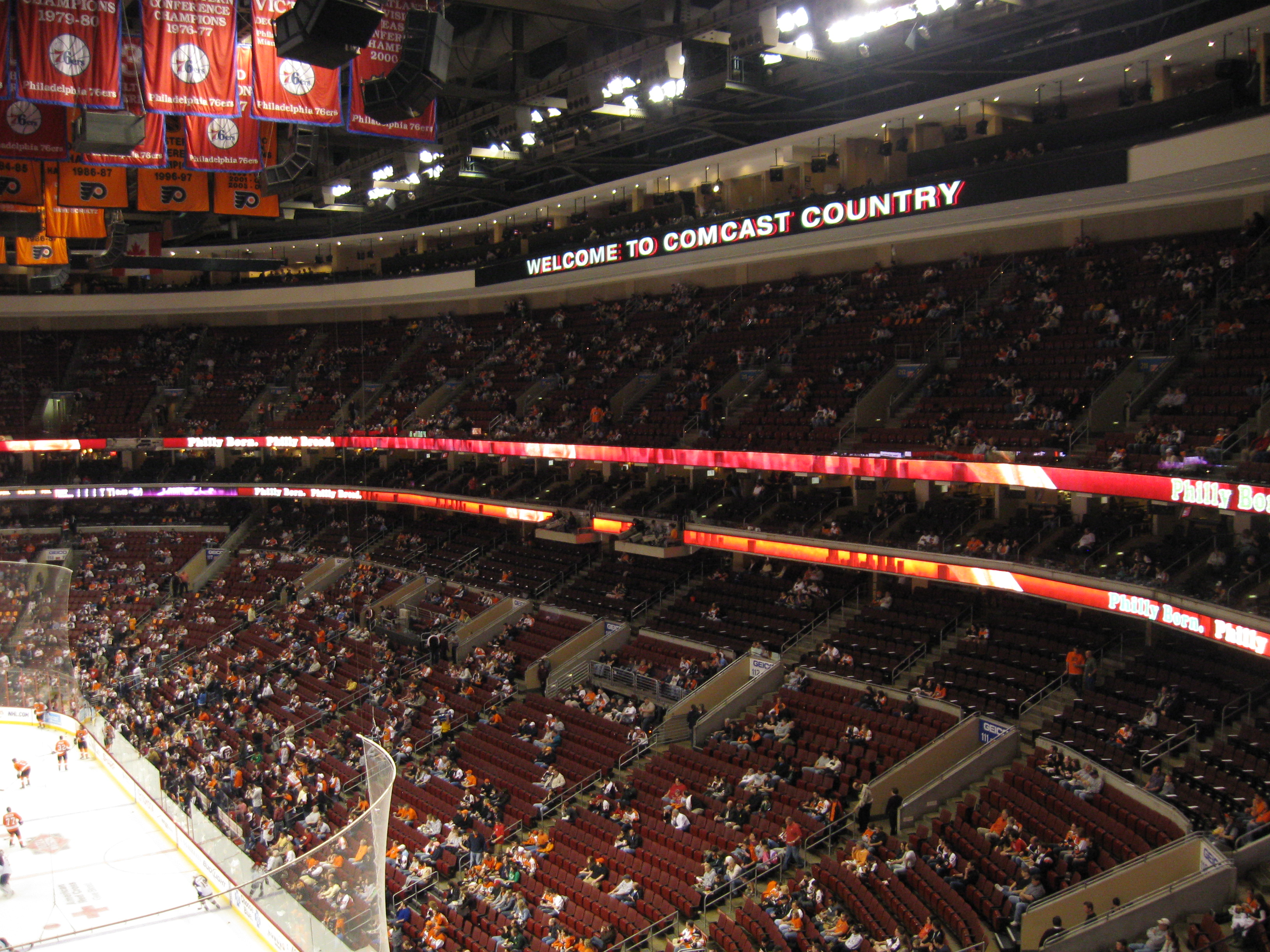 Cable giant Comcast owns the team and their name is disgustingly plastered all over the building. Most notable is inside, where underneath the top suite/box level, it says “Welcome to Comcast Country”. What does that even mean? “Welcome to the area where most cable subscribers have Comcast since it is the only option”?….The Flyers old building, the Spectrum, sits across the parking lot and was one of the most intimidating in the league. However, it will be torn down later this year…..A great tradition that started in the Spectrum was Kate Smith singing “God Bless America”. So successful were the Flyers when she sang that, they started to have her during big games. That tradition continues today as it is played during playoff games, with Lauren Hart splitting the song with Smith as it is played on the jumbotron.
