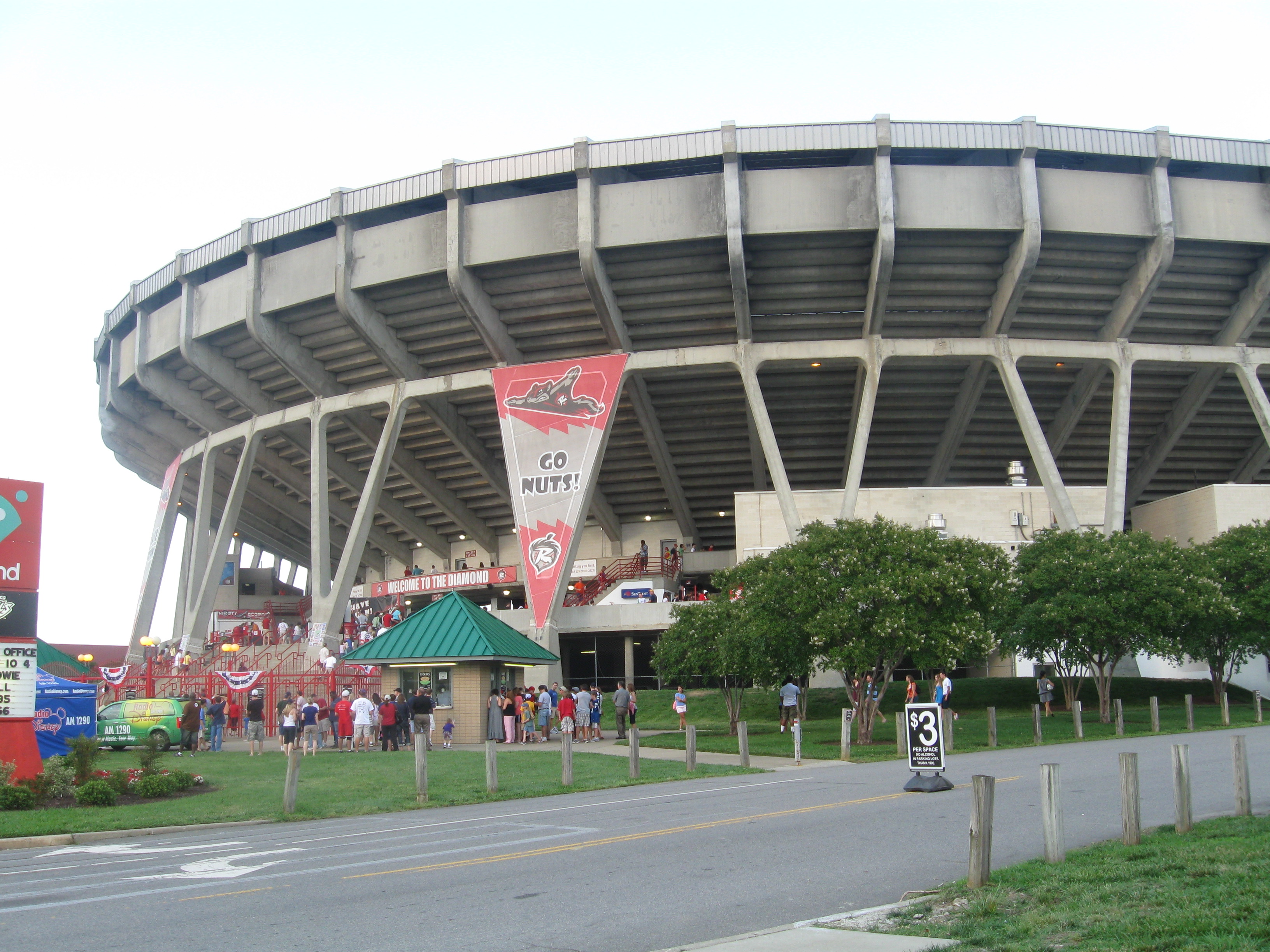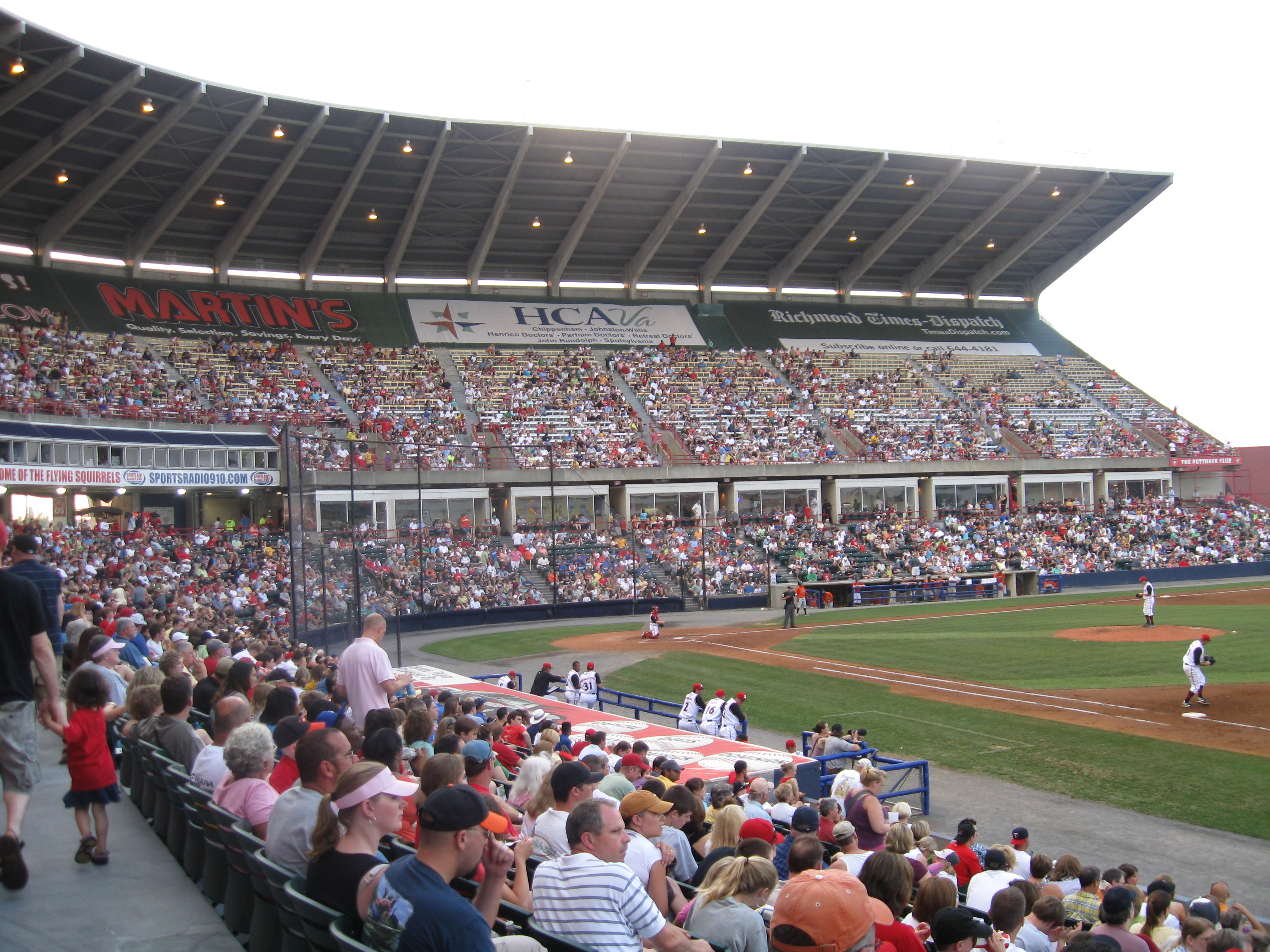The Flying Squirrels. Certainly one of the more unique nicknames in baseball. This animal is native to Virginia and allows for a lot wacky (some say “nutty”) promotions and play on words….. Virginia Commonwealth University’s baseball team, located in downtown Richmond, also calls The Diamond home…..The Diamond was built to seat 12,134, however with the ad covering over several rows at the top of the stadium, capacity has been reduced to 9,560.