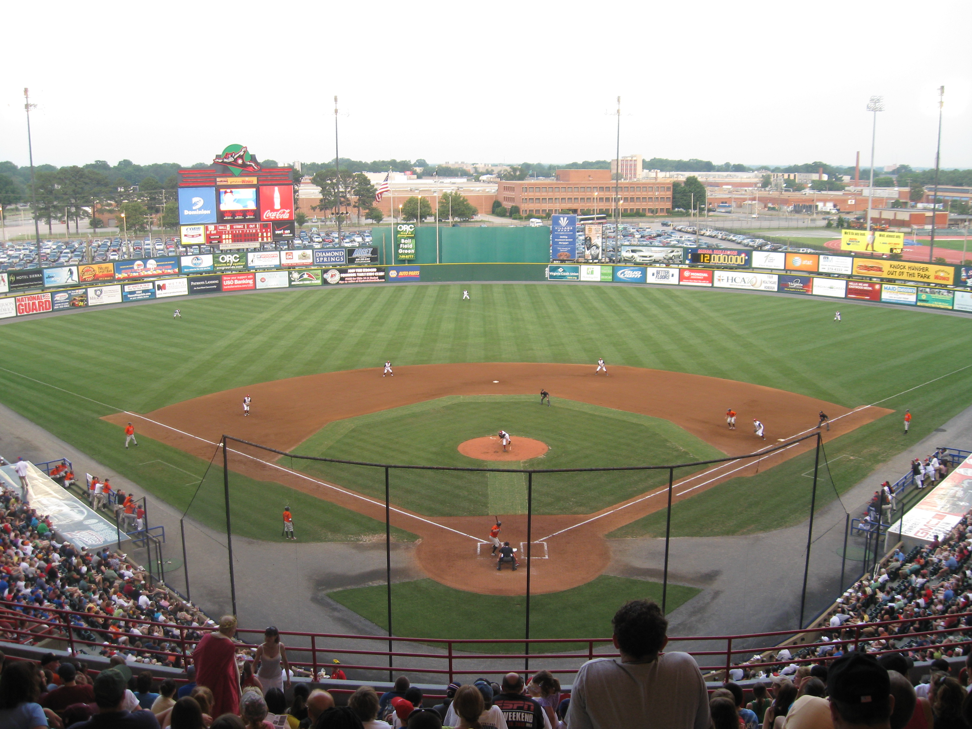 I-95 and I-64 meet near the Diamond and there is an exit close-by. Traffic can back up to the exit after the game, but things move efficiently. Parking lots surround most of the stadium and the large one in the outfield is sufficient even on nights that are near capacity.