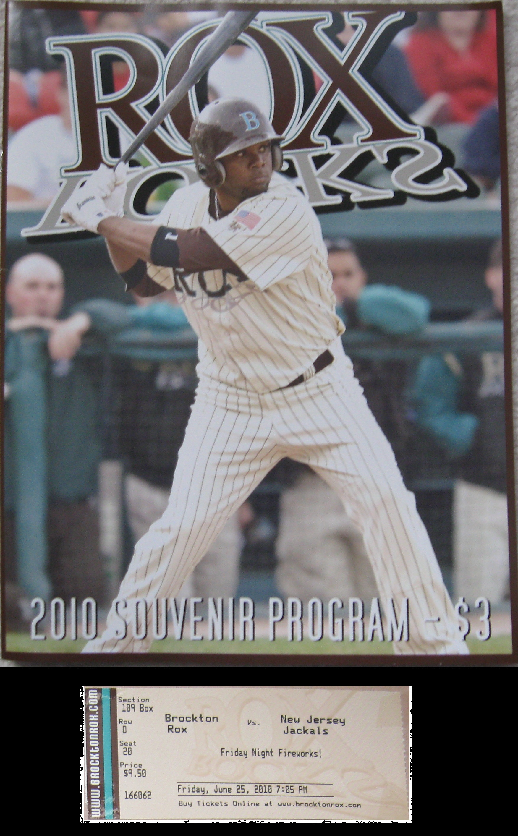 During a stay in Providence, RI for a work-related event, I made the 40 minute drive into Massachusetts to see the Can-Am League’s Brockton Rox play at Campanelli Stadium. The city of Brockton is surprisingly the 6th largest in the state and is located in Southeast Mass, about 45 minutes from Boston. It is known as the “City of Champions”, thanks to their successful high school & two local boxing heroes; Rocky Marciano & Marvin Hagler. The Rox used the Boston Red Sox as inspiration for their nickname and there’s even a shirt that has the Red Sox lettering logo, without the e, d or s and says “Half the letters, double the fun”. Brockton has captured one league title (2003) and have been playing in Campanelli Stadium since their inception in 2002. After a near shutdown of the franchise at the end of last year because of debt, new management has kept the Rox going.