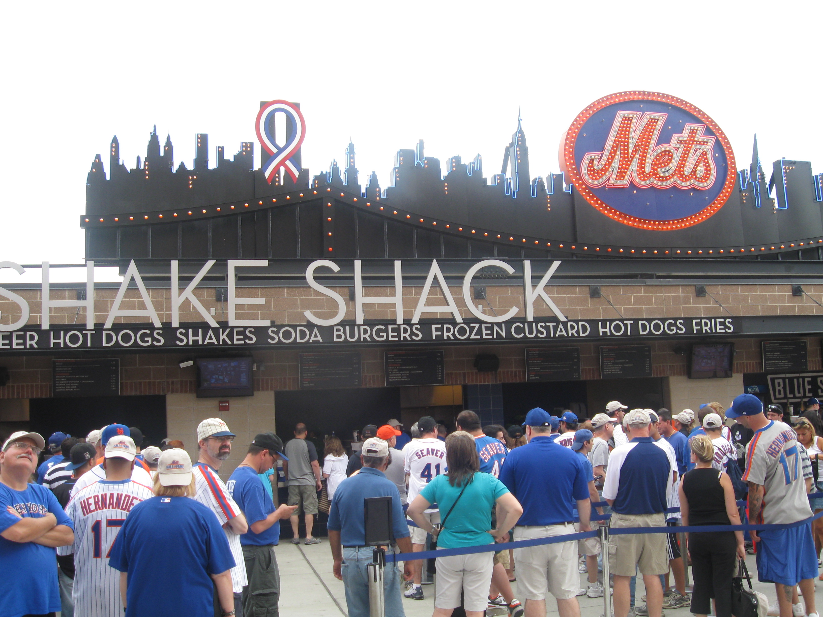 The main reason fans comes to this outfield section is for the food. The “Shake Shack”, a growing chain that has delicious burgers and shakes is by far the most popular. Also in the outfield is the “Taste of the City” with concession stands such as “Catch of the Day” and “El Verano Taqeuria”. Another city restaurant, “Blue Smoke” provides the awesome barbeque. This area is full of a huge variety of food (and lines) with the “World’s Market Fair” near the same vicinity. “Mama’s of Corona” brings some great Italian specialties. Most of the stands behind the seats were standard stuff with Nathan’s Hot Dogs particularly highlighted, however there were some of those outfield food offerings also available upstairs. Overall, terrific food here. Beer selection at Citi Field was also staggering as their “Big Apple Brews” section had a whopping 28 bottled varieties.