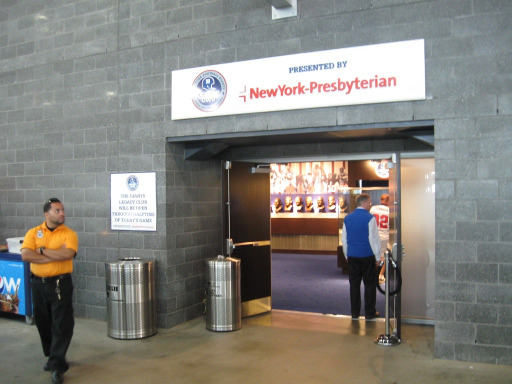 A trip to the new stadium wouldn’t be complete without visiting the “Legacy Club” on the 100-level concourse. Open to the public, it is a terrific hall devoted to the Giants featuring team artifacts, including their three Super Bowl trophies and the busts of important and retired players. At the game I attended there were no visible banners, however that was quick to change as the following week, the Ring of Honor was to be unveiled. This will be located in the end zone and include 30 players.