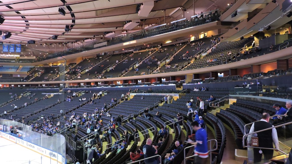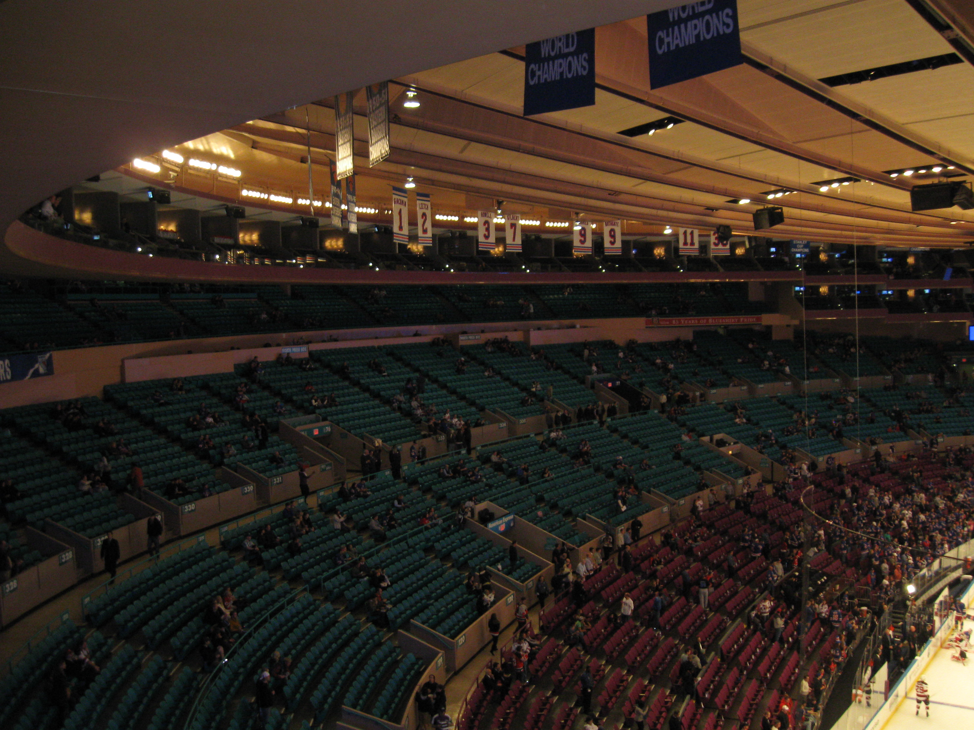 Fan support is great and there are plenty of Ranger fans not just in the City, but also in New Jersey and Southern New York / Western Connecticut. However, it should be noted that of the four major pro sports, the Rangers (like hockey) has the relatively smaller number of the popularity. You’ll typically find New Yorkers rooting for the Giants – Yankees – Rangers together, while the other group follows the Mets – Jets – Islanders. Despite the ticket prices, the building still is full for the majority of games and the team does well from an attendance standpoint, along with local TV ratings. The swanky 100 level will have some empties, along with slow-to-arrive and fast-to-leave fans, while the upper sections are pretty much full. For all three of the games I’ve attended here, it has been a mostly packed house.