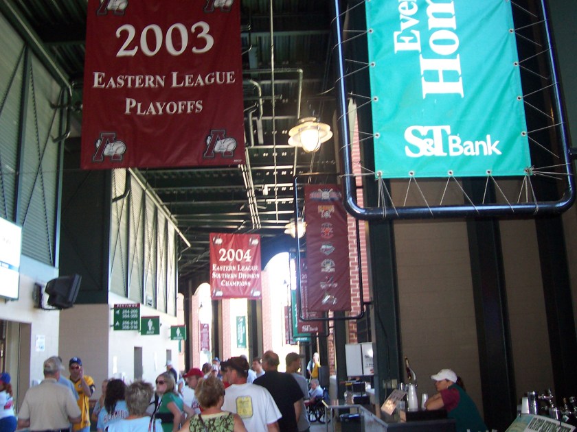 The concourse is decorated eloquently and I was a fan of the large red banners hanging down from the ceiling in the upper concourse. They were used for team achievements including playoff appearances and division titles. Other side banners provided some good info on the franchise, including the starting lineup for the Curve on every opening day. Just before entering the concourse is a “Road to the Show” wall, which features the names of each player to make it with the Pirates (or other team appearance if applicable). One retired number was seen in the concourse (next to an awesome display of Eastern League Ballparks), a huge “16” for Adam Hyzdu, a two-time MVP for the Curve.