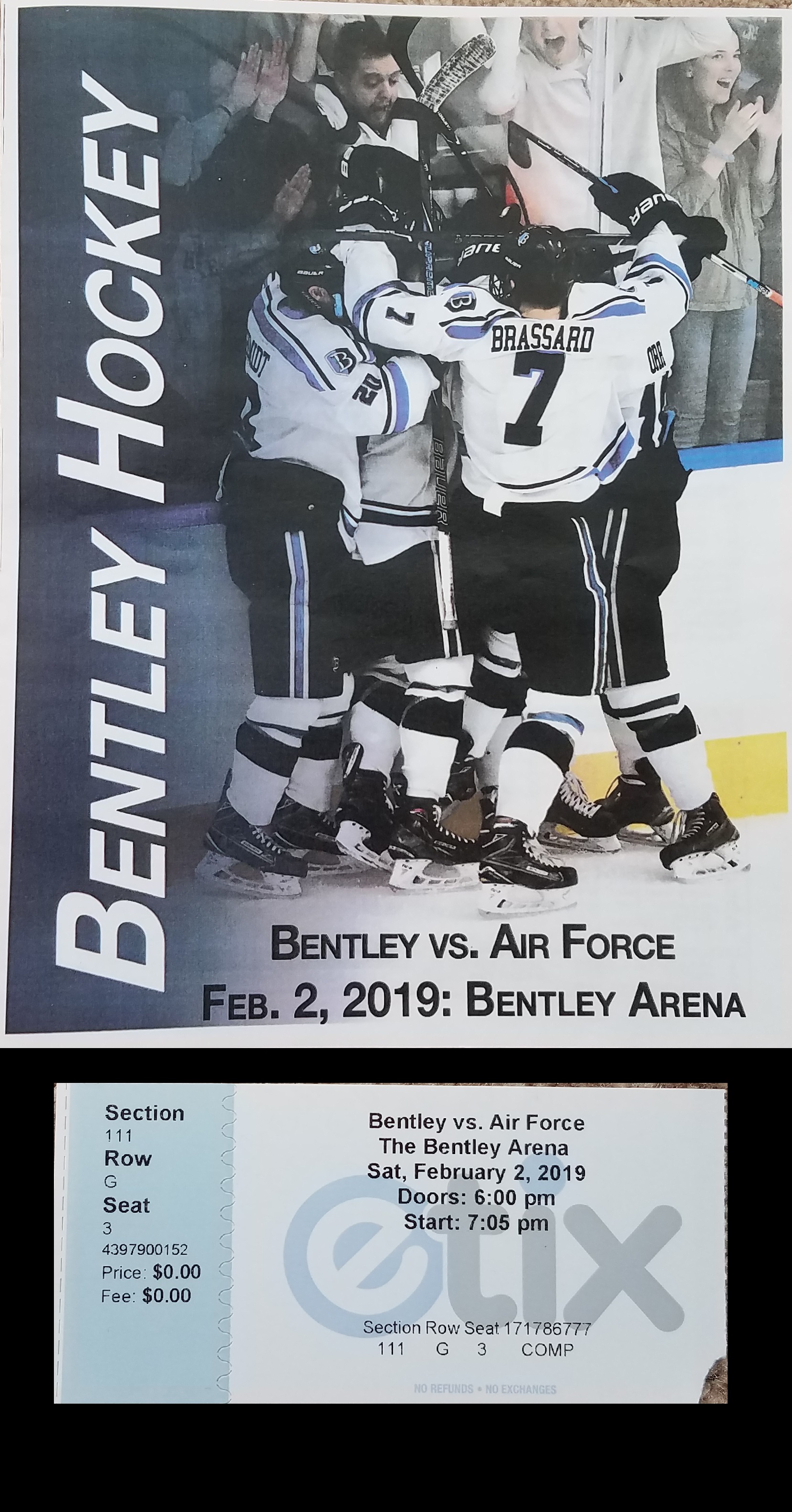 This was a clunky, clutzy game that was marred by turnovers and random falls. I’ve seen a few AHA games and I know the product is better than what I saw on this night. Bentley won 4-0 and Air Force really struggled to generate much pressure. Luke Santerno had a goal and assist for the home Falcons.