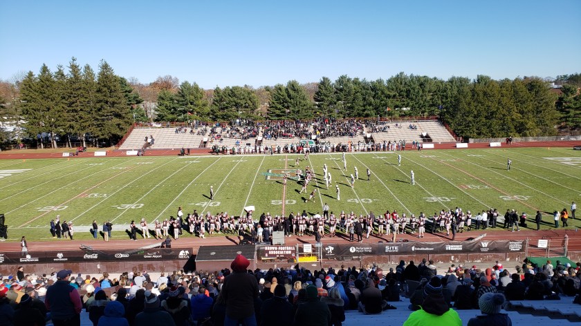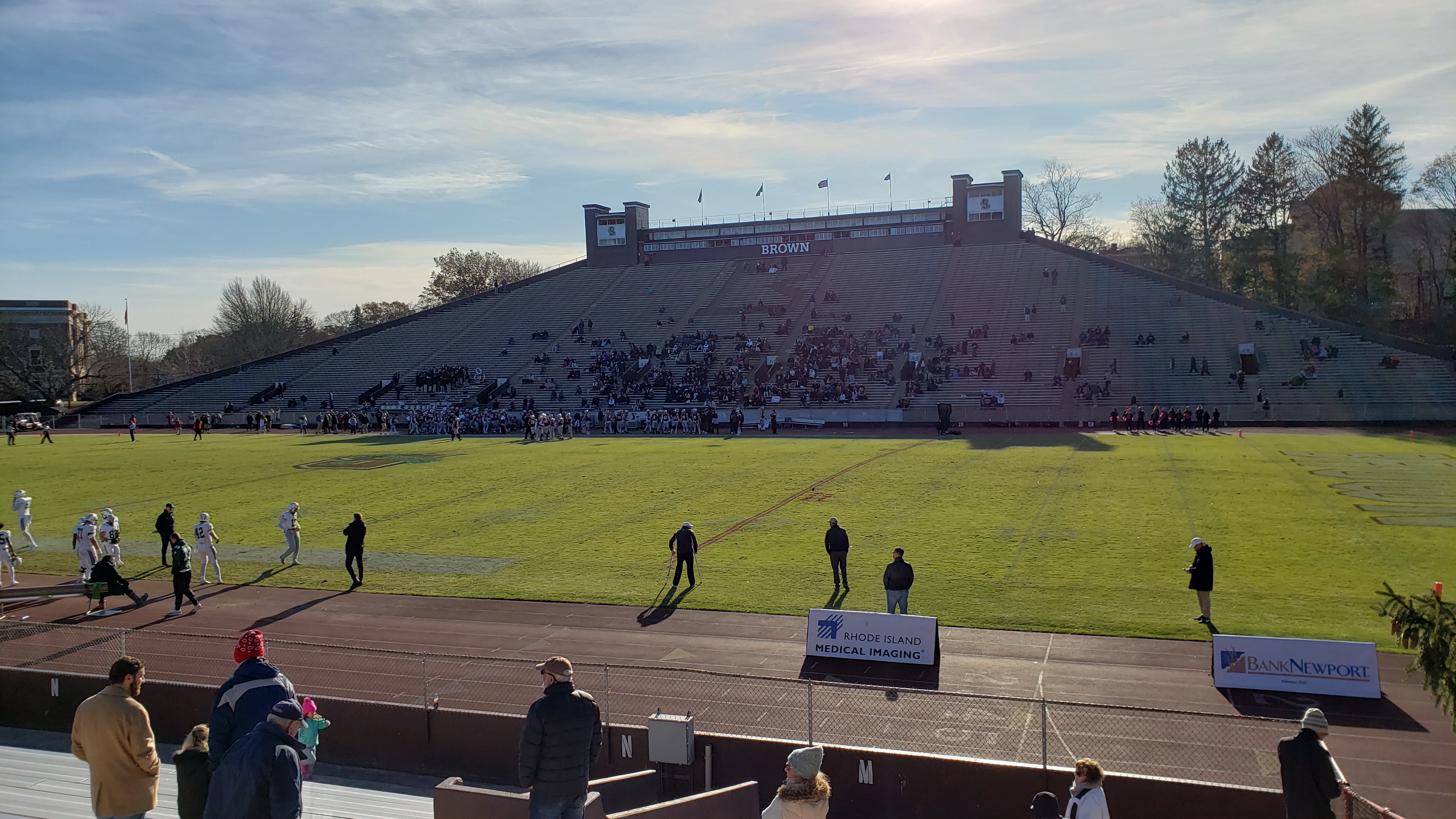 On a seasonably cold day, Brown Stadium was the site of my 8th and final Ivy League visit, completing the circuit in fine fashion with the League championship on the line. Brown University was founded in the 1700s and though it’s not the first school that comes to mind when thinking “Ivy”, the list of achievements, academic advancements and noteworthy attendees makes this private school highly regarded. The athletic program is far from highly regarded though and that includes the football team. They are 6th in the conference in terms of League Championships as they only have four, their last coming in 2008. It’s been six seasons since the Bears have had a winning record. Brown Stadium was built in 1925 and very little has changed with this historic facility. The school is located in Providence, the capital of the Ocean State. This city of 180,000 experienced a wonderful “renaissance” over the last few decades that turned it around and I found it to be a great place to visit.