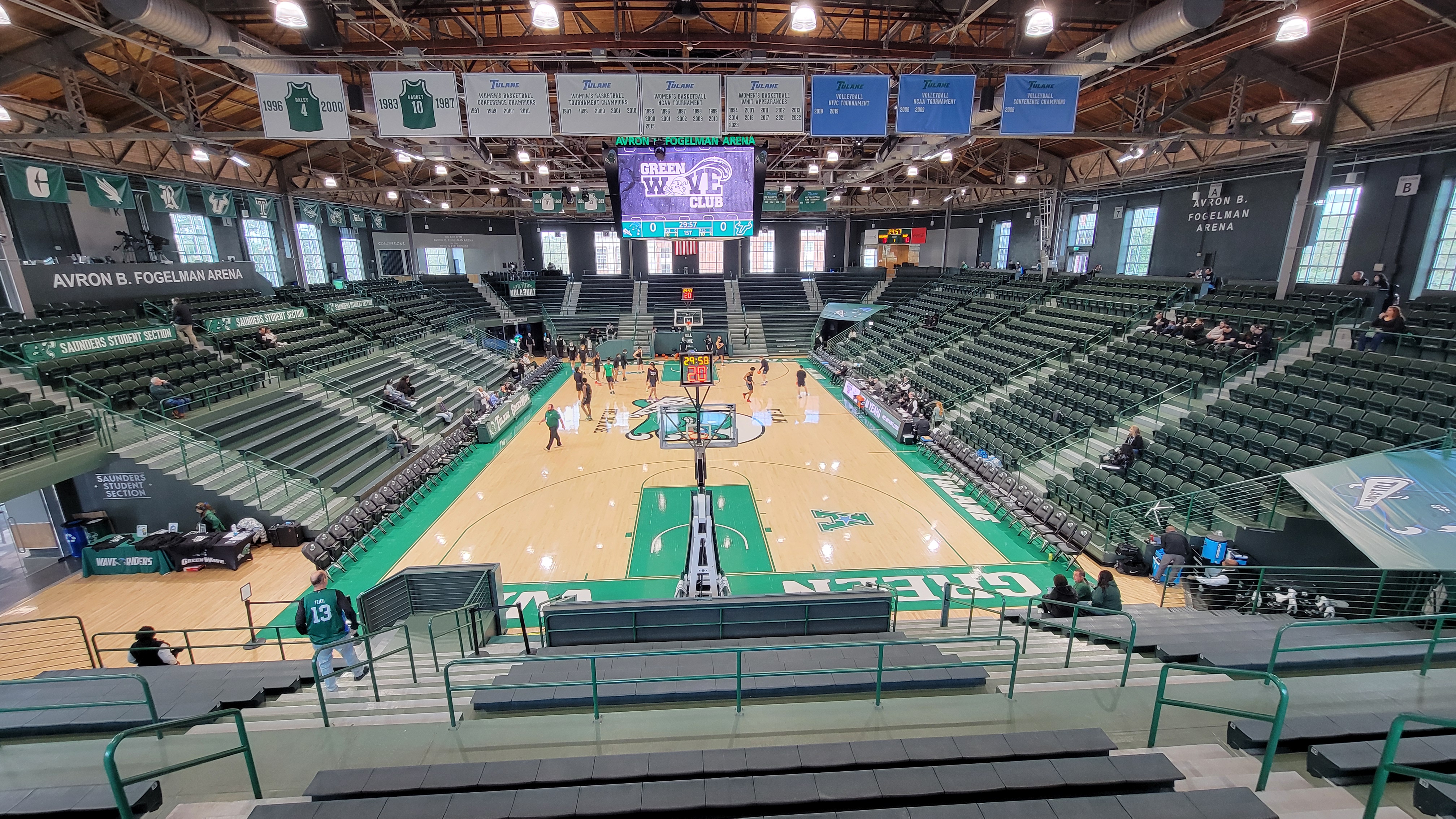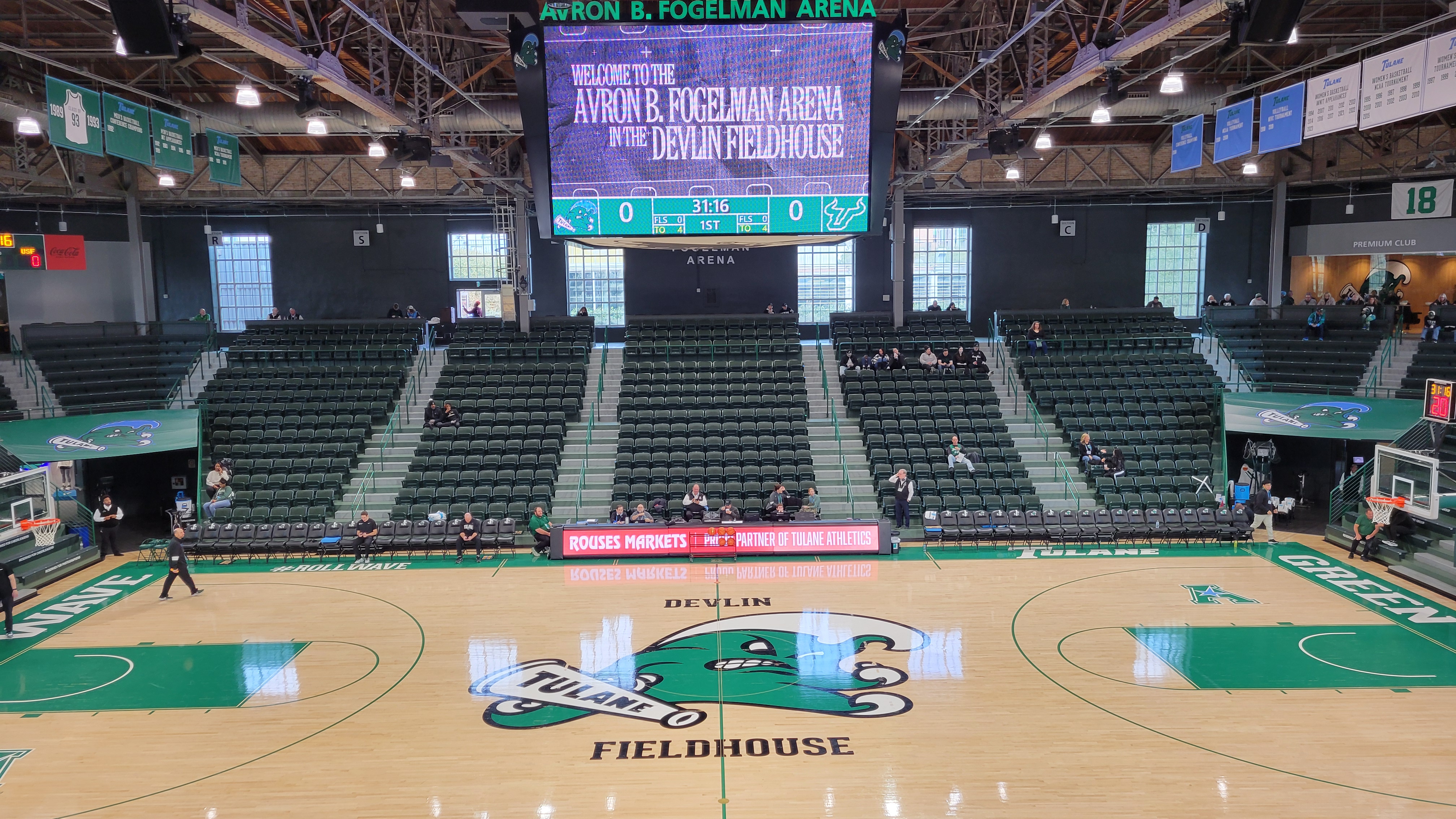 Devlin is generally a chill environment and the first half didn’t feature too many people thoroughly into the game. As the Green Wave started to make a comeback, the crowd began making noise. A few stood and got the atmosphere to reasonable levels. The acoustics and closeness between seats/court can allow for the building to get really loud. Get students to pack it out for a big game and this can be a great atmosphere. There is a pep band as well.