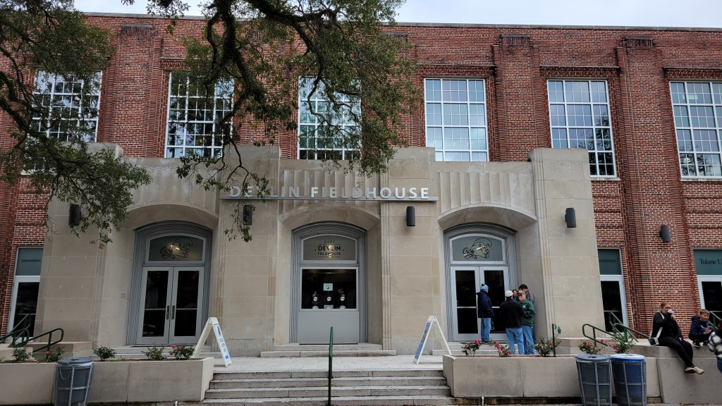 Being located on famed St. Charles Ave, means Tulane has long been accessible by streetcar. These vintage trolleys are seemingly a good way to get to the game and that’s how I choose to arrive as it was a 30-minute ride from my hotel near the Convention Center. Things started off conspicuously as times were off on the Le Pass app that I was using to catch the trolley. There was the dreaded “significant delays”, but no info. Thankfully, it didn’t delay my arrival and it was a comfortable trip to the Tulane/Loyola station. From there, it’s a 10-minute scenic walk to reach Devlin Fieldhouse. Coming back on the streetcar was another story, I waited 35 minutes for the next one as the app showed “no live updates” and next arrival times came and went. As I debated whether to Uber, I finally saw one and got on. It was packed. Going the streetcar route seems a good idea, but reliability can be questionable. As for driving, that may not be a pleasant venture either. Despite traffic often not horrendous, road quality can be abysmal and drivers have a reputation of being difficult to share the road with, leading to high stress. Whether coming from downtown or if coming from the west, Tulane isn’t near I-10, so local roads are required. For parking, it is at least simple as there is a large garage just down the road on Freret St. and that will completely suffice for the game.