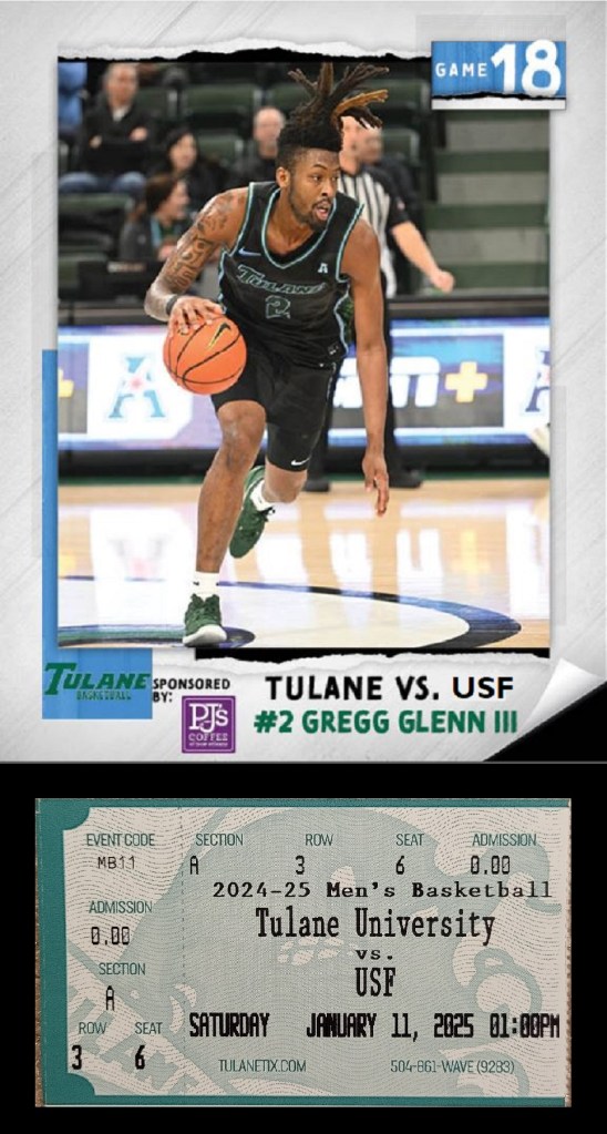 The Green Wave haven’t made the Tournament since 1995 and it was not a good start to this season, having lost to New Orleans and SE Louisiana at home. However, they were playing better going into this one and started 2-1 in The American. The game was against South Florida and it looked like they were punching above their weight class. After an early 10-point deficit, USF quickly took control and got the lead at the end of the half. I thought it was over, but Tulane showed good fight and Rowan Brumbaugh (13 pts) / Asher Woods (15 pts) led the charge as they grabbed the lead with the small crowd behind them late in the game. The key play was with 36 seconds left and USF made it 67-69 at the free throw line. They missed the next one, got the rebound and then turned the ball over. Tulane on the ensuing play, broke the press and foul attempts as Kaleb Banks all but sealed it with a dunk and a 4-point lead with 14 seconds to play.